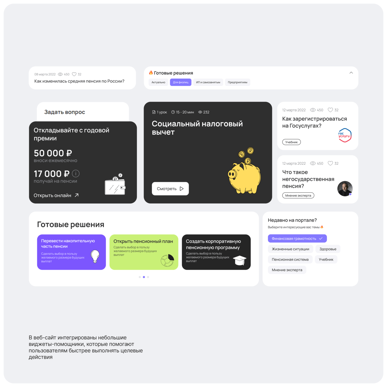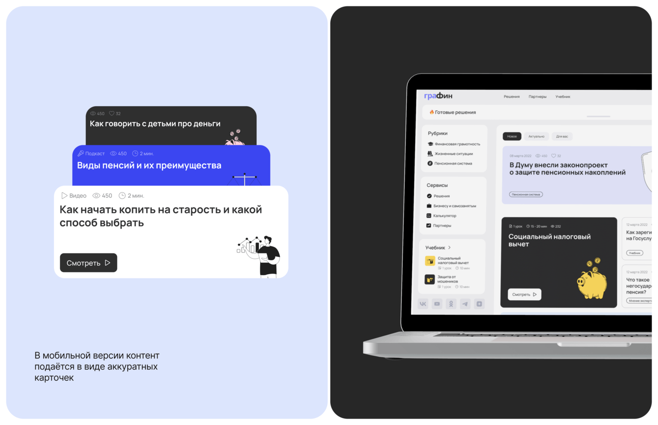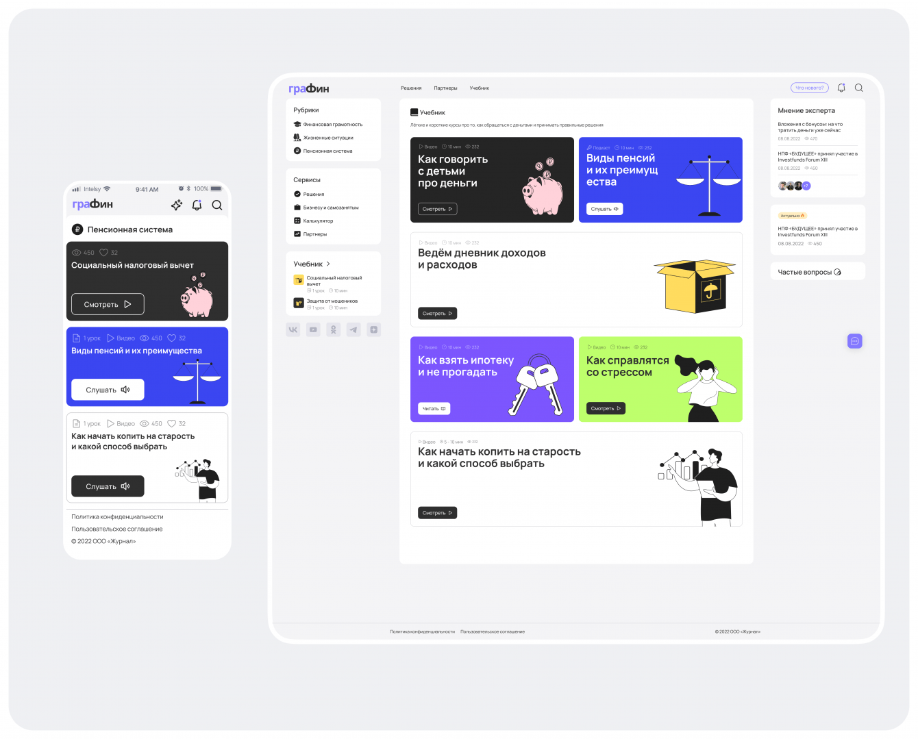 Поэтому было принято решение разработать и запустить веб-площадку, которая не только будет помогать аудитории быстро получать ответы на интересующие их вопросы, но и нативно покажет продукты, объясняя их выгоду наглядным и доступным для массовой аудитории образом: через понятные статьи, разборы, квизы и прочие интерактивные инструменты.