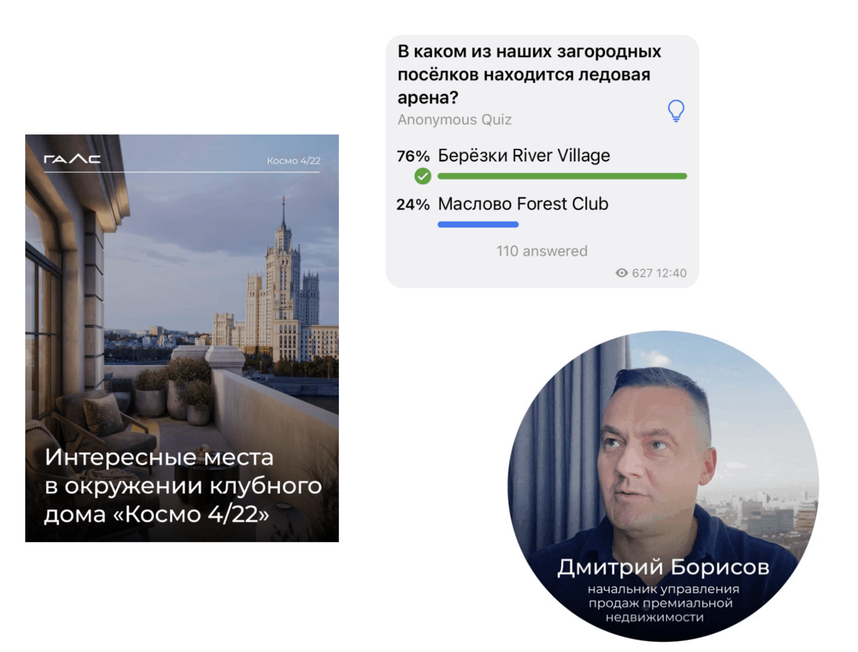 Внутри каждой из рубрик контент был призван вовлекать подписчиков, растить их лояльность к бренду и формировать имидж как одного из топовых девелоперов премиум-недвижимости Москвы, при этом открытого, полезного и нескучного для потенциальных и существующих клиентов.