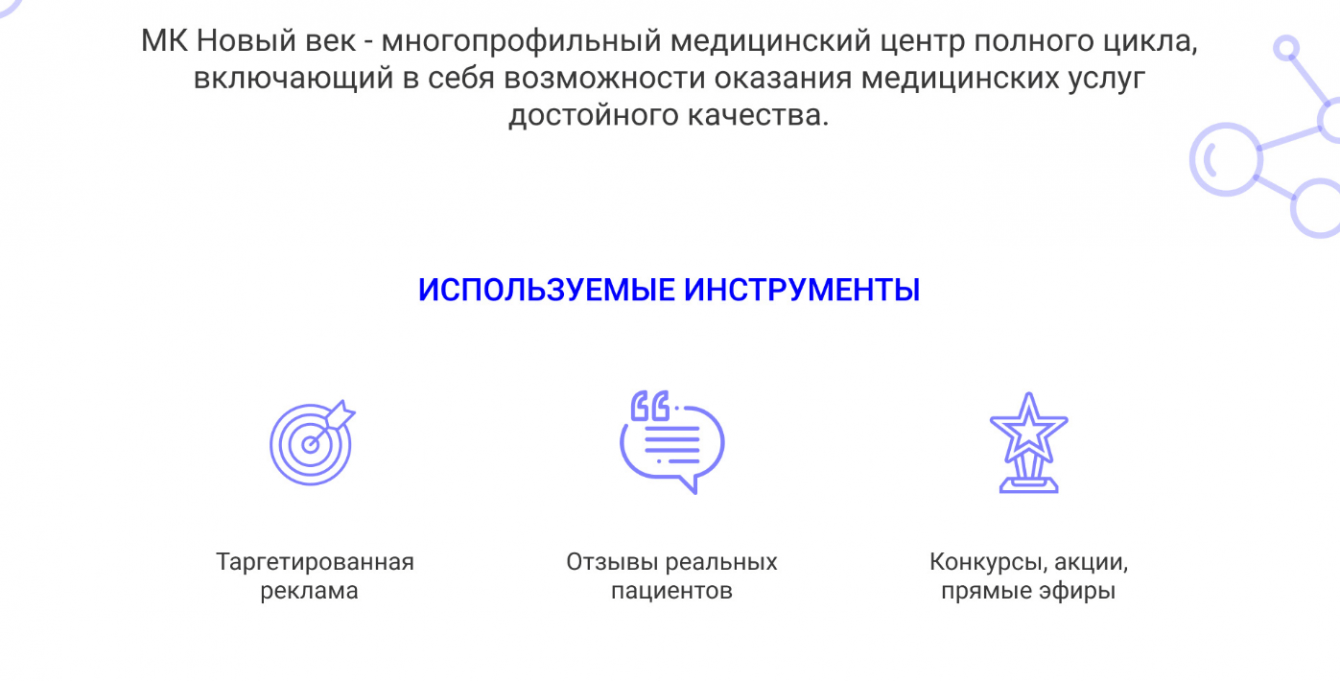 Рады продуктивному сотрудничеству с медицинской компанией "Новый Век". Надеемся, что в будущем мы продолжим ведение их социальных сетей.