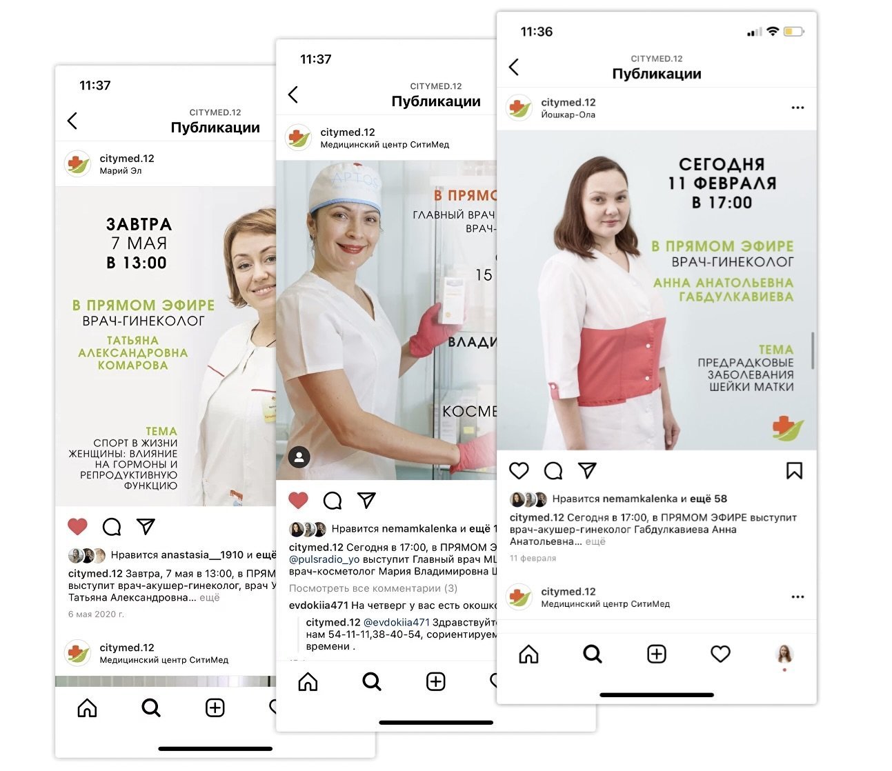 В конце марта 2020 года, с введением самоизоляции, часть услуг медицинского центра оказалась под запретом. Кроме того, многие люди старались не выходить из дома без лишней необходимости, что резко снизило количество посетителей центра. Тогда мы решили поддерживать людей онлайн и старались решить их проблемы без личной встречи. Начался целый цикл прямых эфиров с ведущими врачами, которые отвечали на вопросы подписчиков, рассказывали о правилах поведения в пандемию, проводили открытые консультации для больных COVID-19. В первый же день самоизоляции самым большим спросом среди подписчиков пользовались консультации терапевта, педиатра и гинеколога.