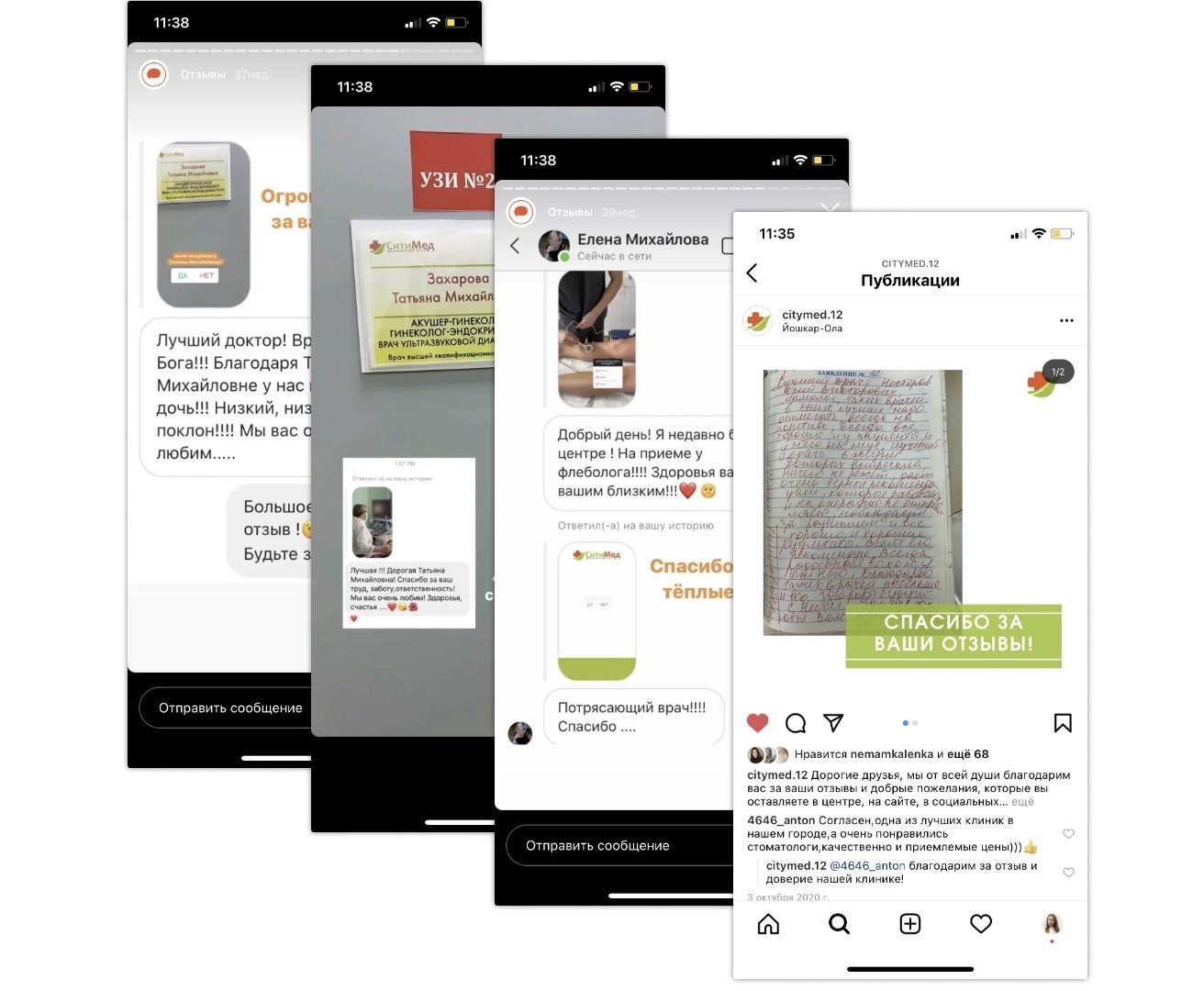 Главным критерием в выборе врача была и остается его компетентность, поэтому зачастую вместе с фотографиями врачей мы публиковали и отзывы на них с различных площадок. Это вызвало позитивную волну: подписчики присоединились и стали писать положительные отзывы в комментариях, тем самым еще больше увеличивая уровень доверия к врачу.