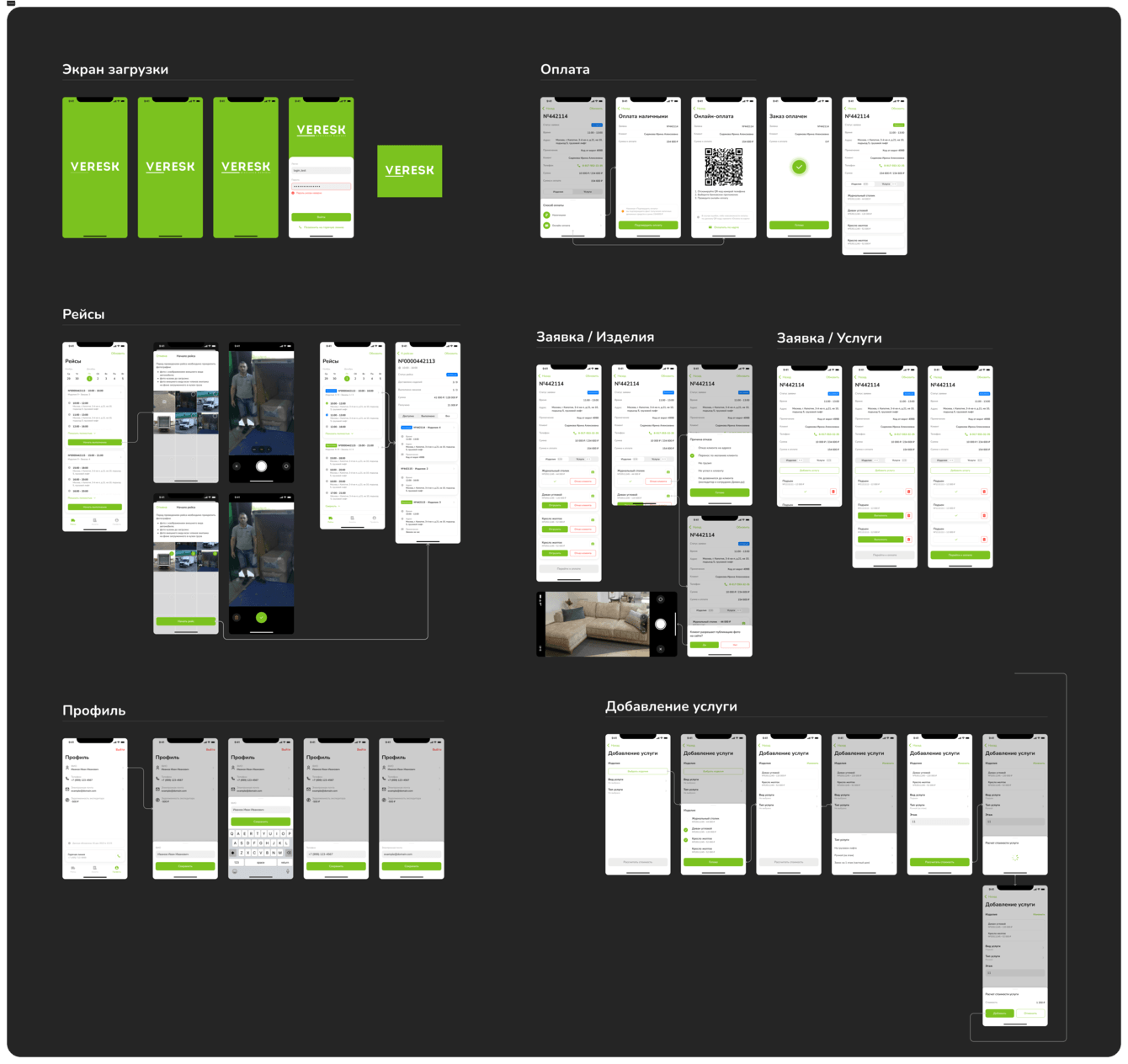 - Детализация заказа с возможностью принять и отказаться от изделия