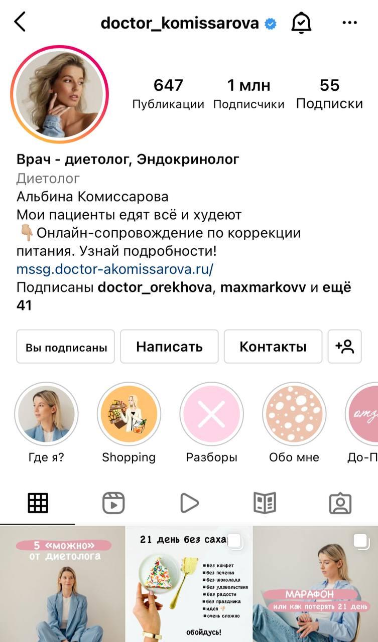 Клиент: доктор диетолог-эндокринолог Альбина Комиссарова