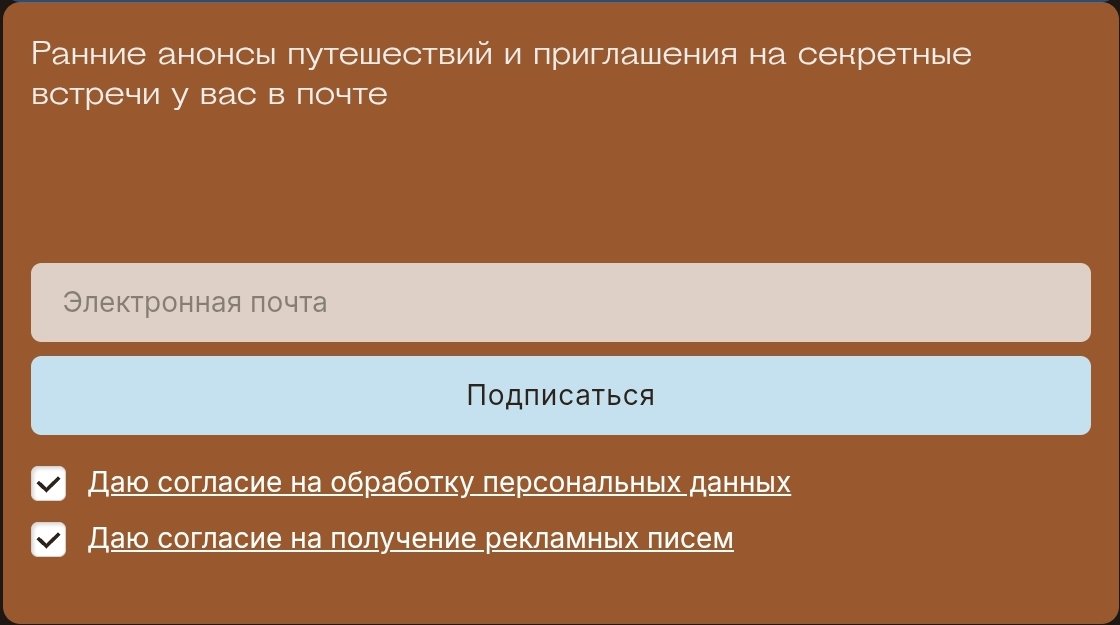 Брошенная корзина. Если клиент смотрит путешествие на сайте, ему приходит письмо со ссылкой, чтобы не пришлось искать заново.