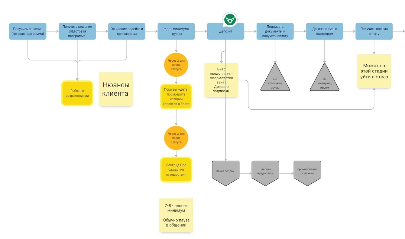 Если проработать каждую воронку в системе управления клиентскими данными (CRM-системе) и настроить каскад персонализированных коммуникаций, можно увеличить показатели продаж и снизить нагрузку на менеджеров. Важно начать реактивировать клиентов, которые ушли в стадию закрыто — сейчас по ним никакой работы не ведётся, менеджеры их не прозванивают. И продумать воронку повторных продаж для клиентов, которые уже побывали в путешествии.