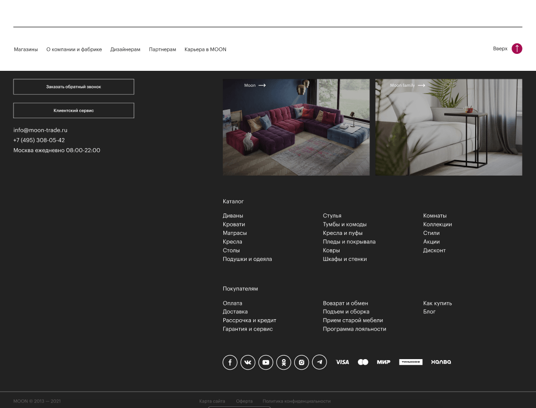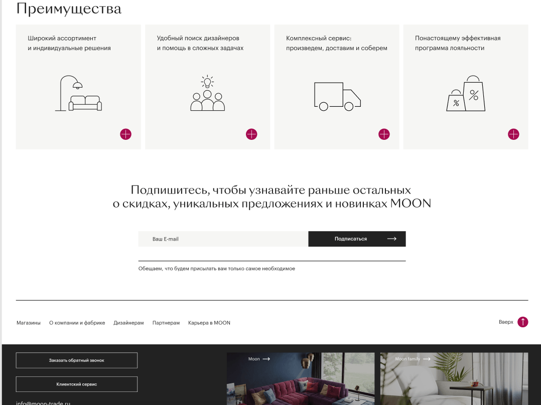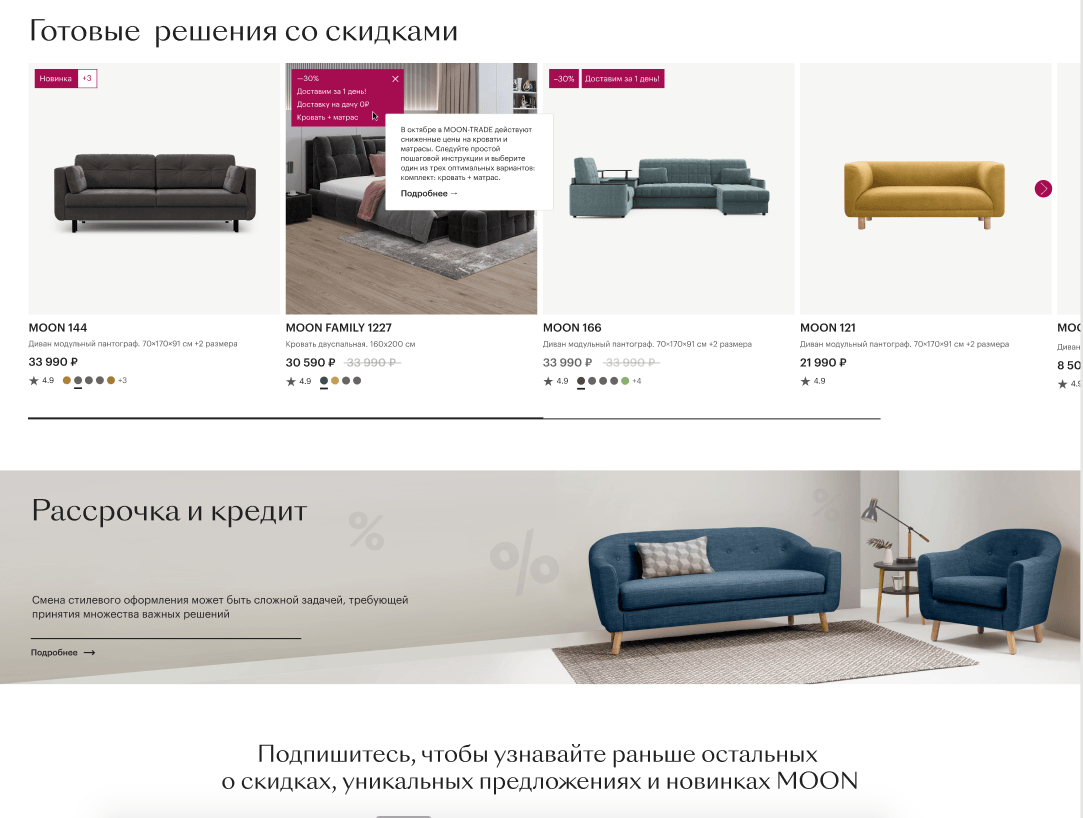 ООО "Живые диваны" в лице Директора по электронной коммерции Макеева С.А. выражает благодарность команде Digital-агентства "Internet Team" в лице Елистратова А.В. за оперативность и решение поставленных задач по разработке сайта Moon.ru