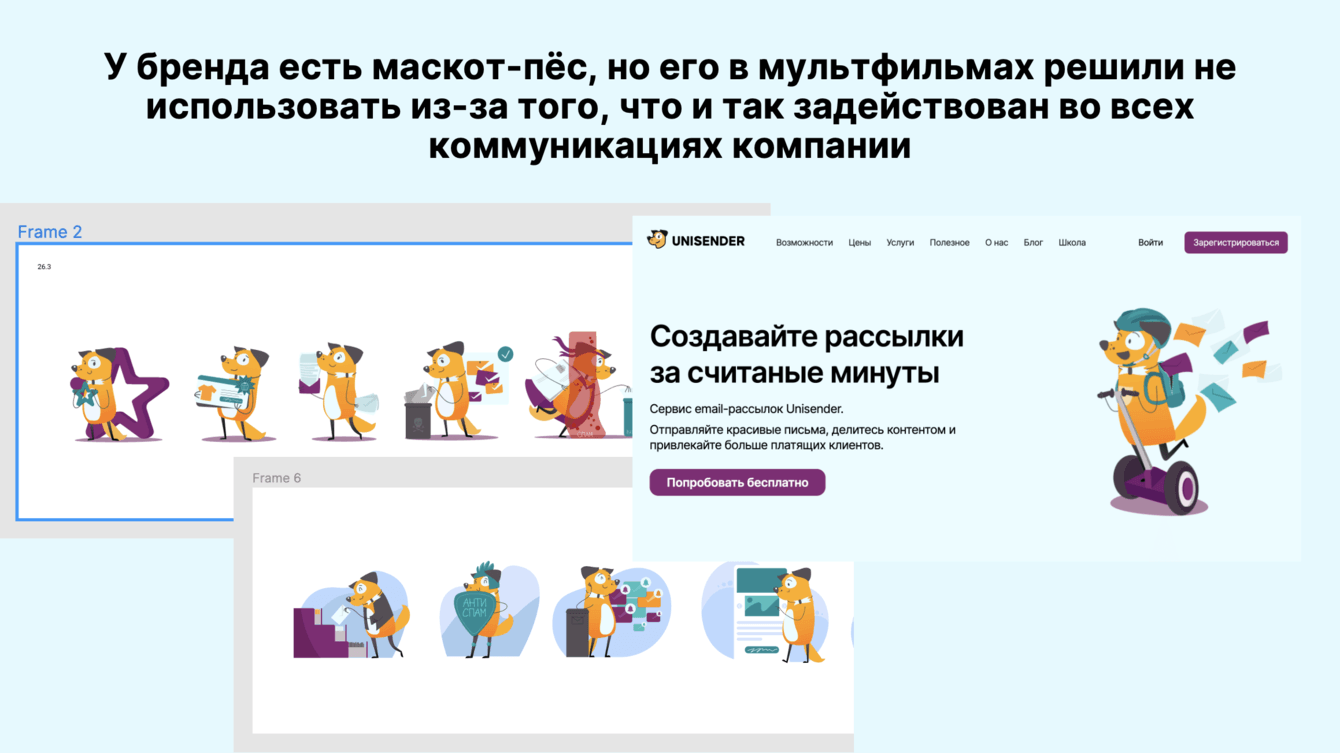 Но в плане стиля рисовки мы все равно отталкивались от фирменного стиля бренда Unisender.