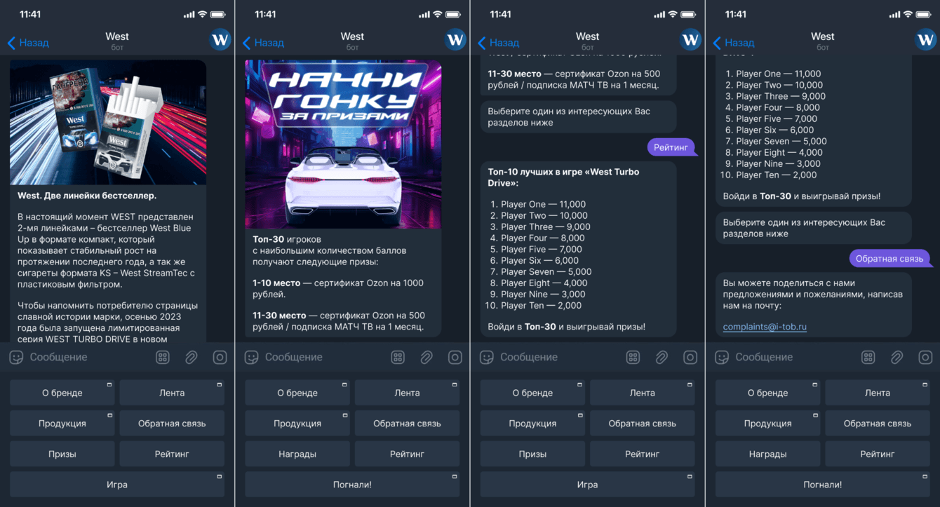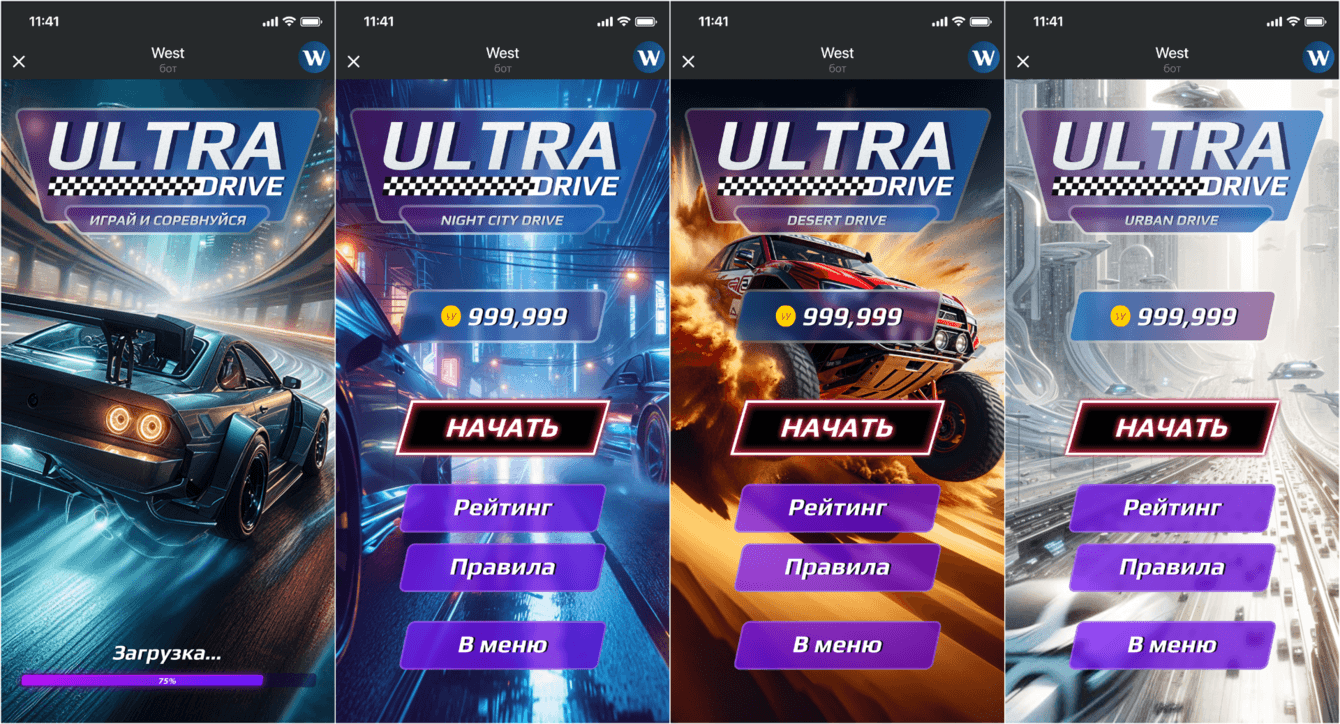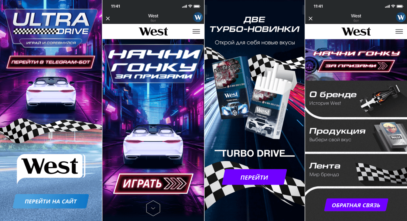 Разработана маркетинговая игровая система «Вест Рейсинг», объединяющая промо‑игру, промо‑сайт и Telegram‑бот.