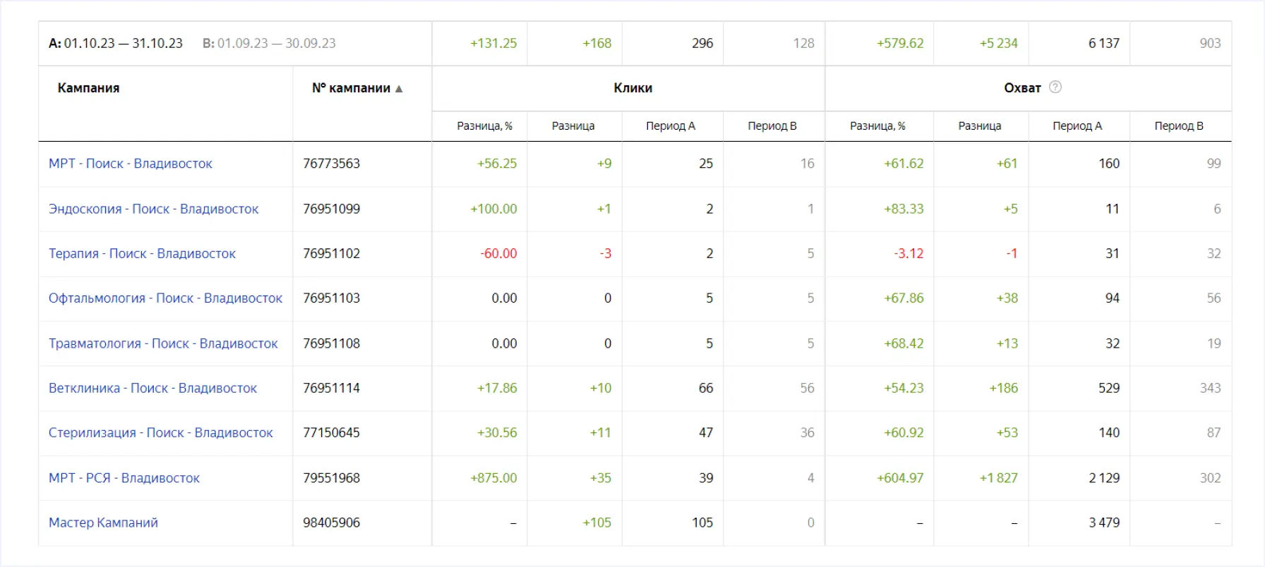 Ключевые фразы были разделены на отдельные группы по направлениям: офтальмология, эндоскопия, стерилизация, терапия, травматология, МРТ и общие запросы.
