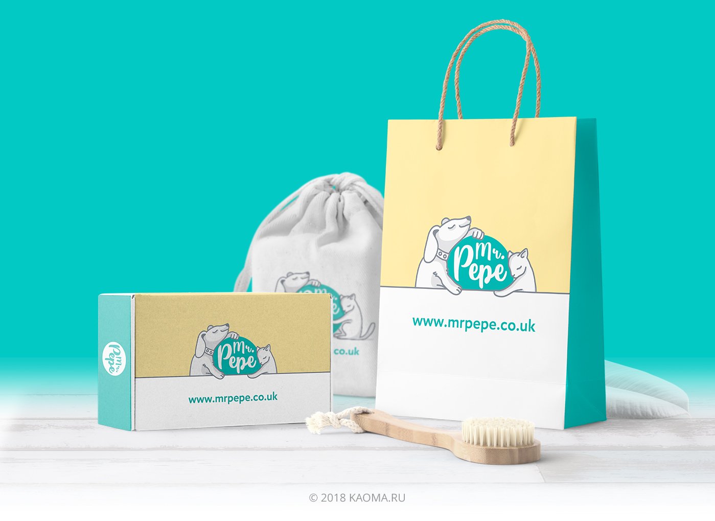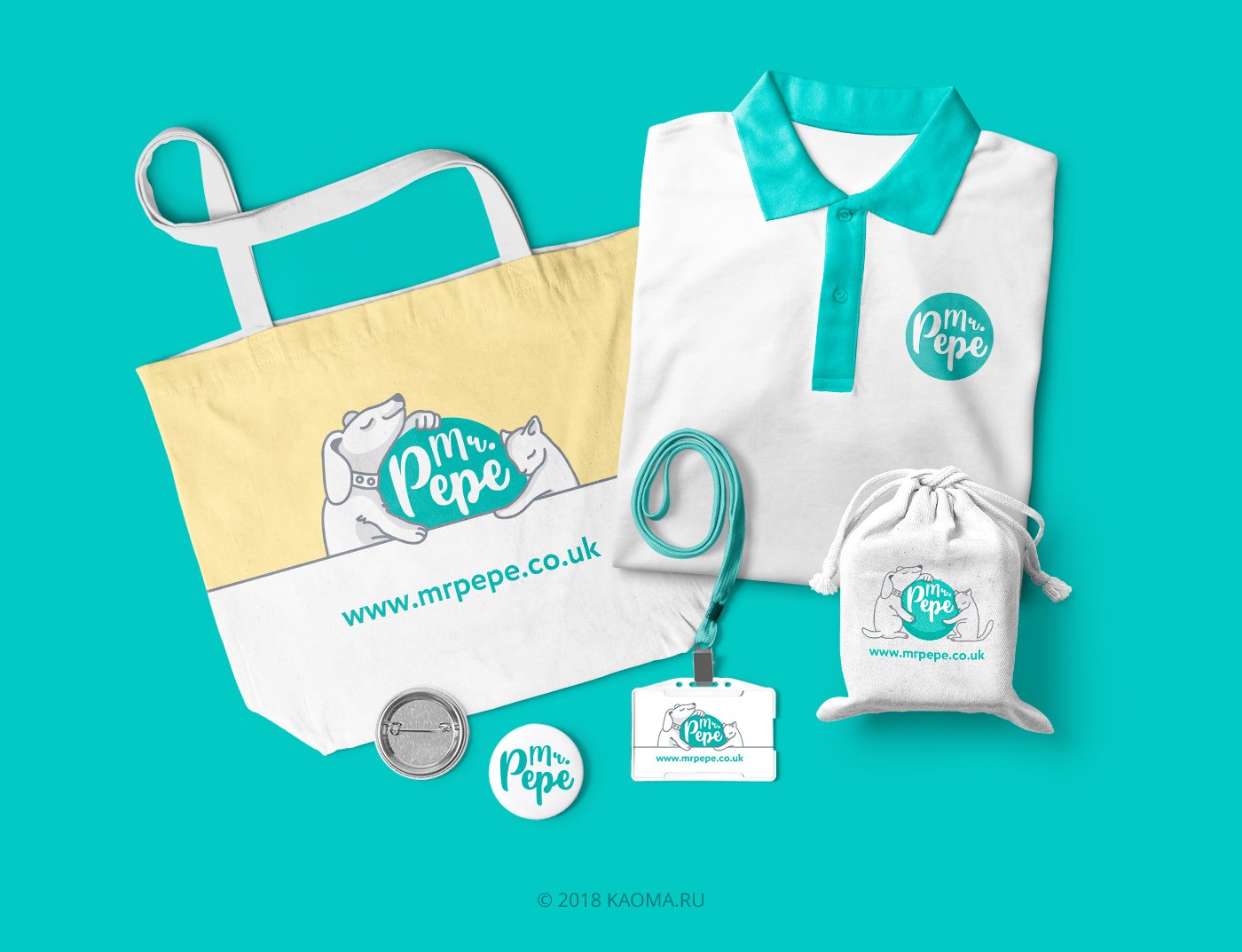 Основной изобразительный мотив бренда – песик и котик нежно обнимают логотип Mr. PePe. Не забыли мы о технологичности – знак Mr. PePe имеет три модификации: