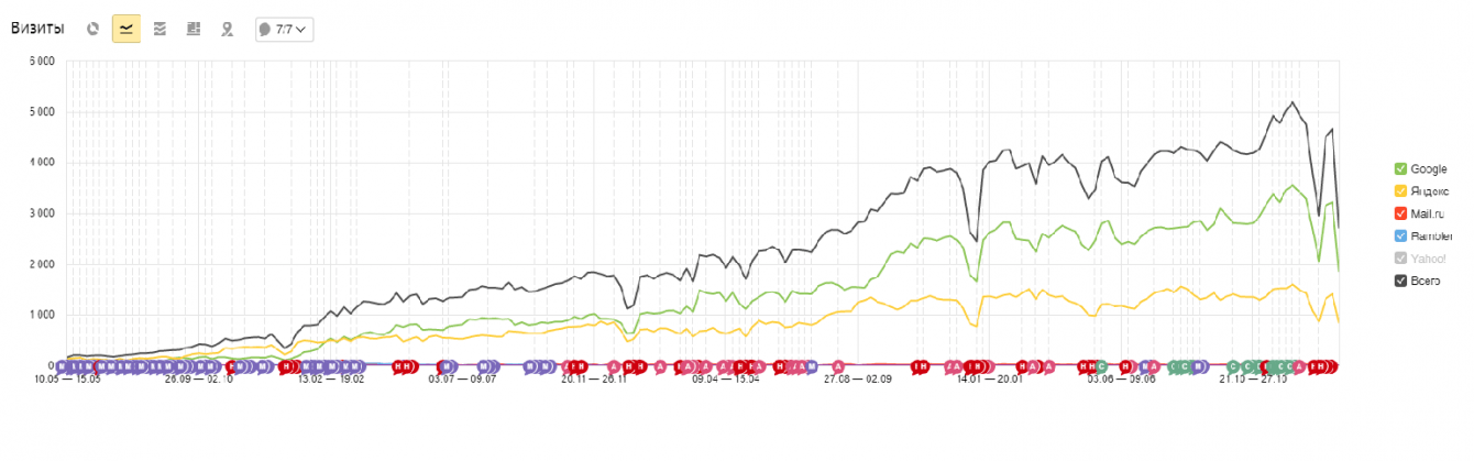 Эффективность продвижения в первую очередь оценивалась не по позициям ограниченного числа запросов, по воронке: