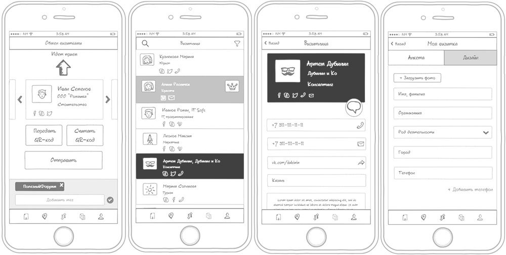 Разработать мобильные приложения для стартапа. Избавить пользователей от бумажных визиток, перенести хранение данных в приложение, реализовать прием и передачу контактов менее, чем за 10 секунд.