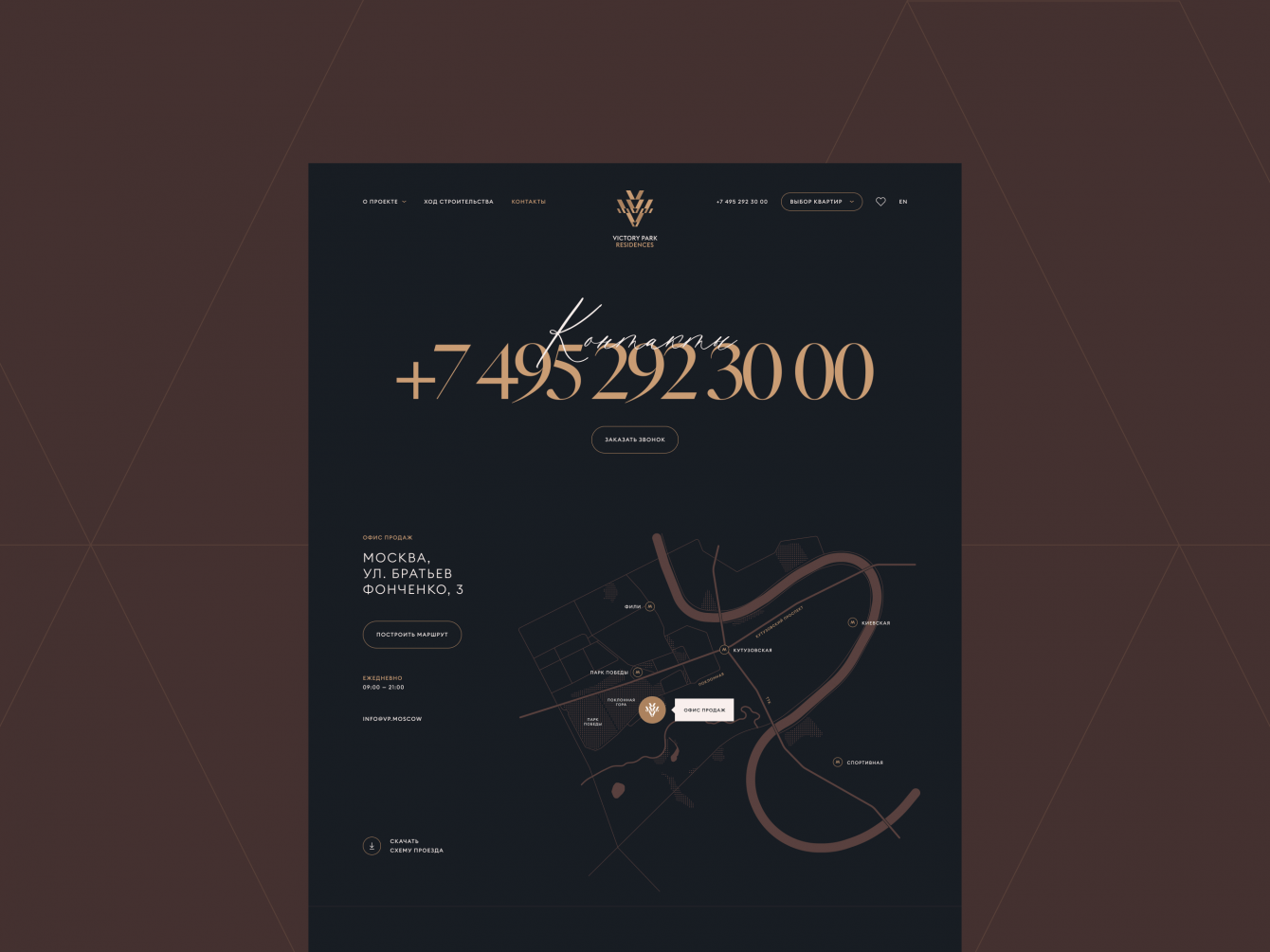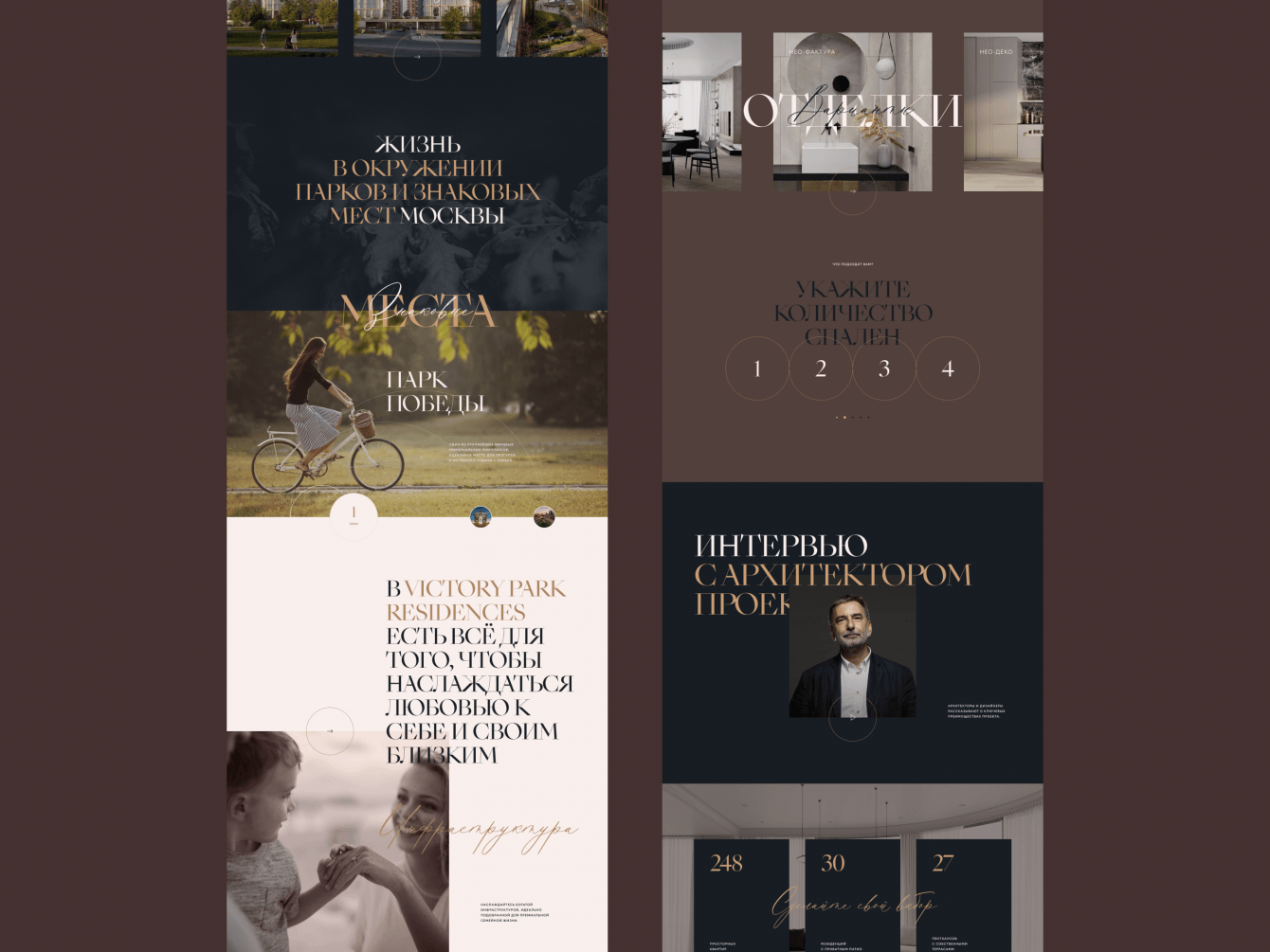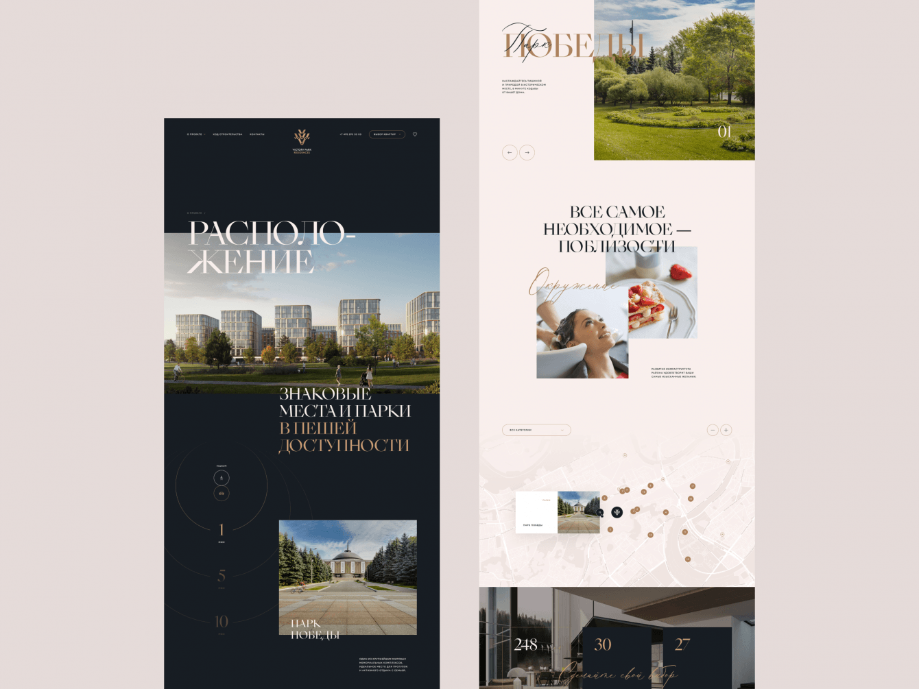 Мы завернули чистую роскошь в код и получили Victory Park! Начали с того, что на основе бренда разработали коммуникативную стратегию и выстроили структуру сайта — ведем клиентов к покупке с помощью методов сторителлинга. Пользователи узнают свои проблемы и потребности в эмоциональных визуалах и вдохновляющих текстах.