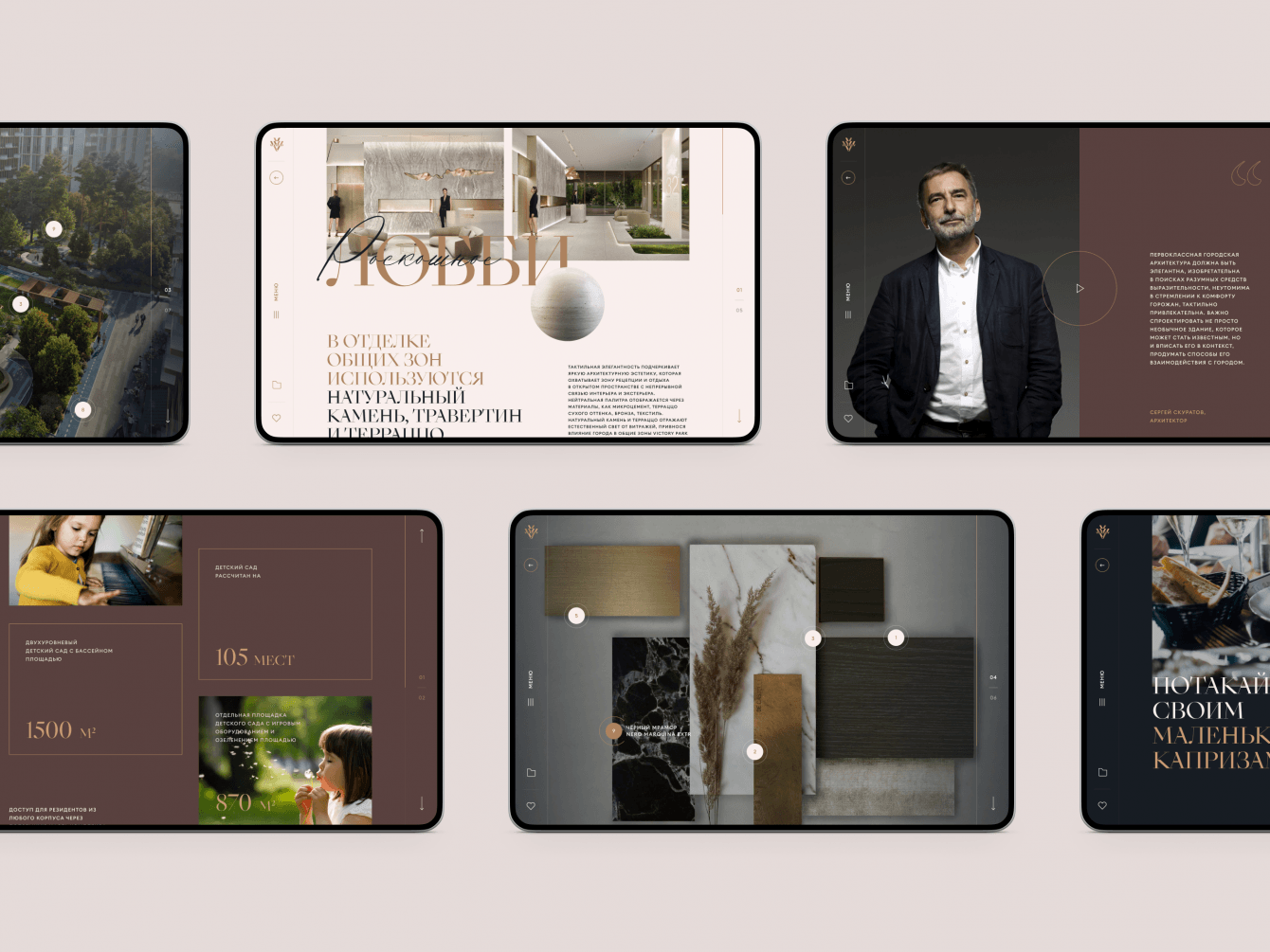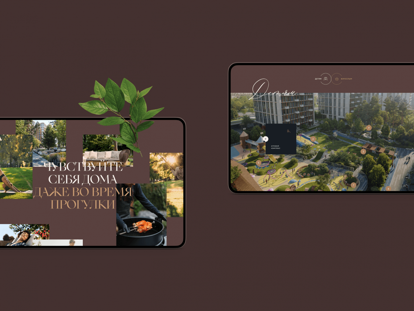 Визуальный стиль пышет благородством фамильных реликвий. Сайт создает настроение семейной жизни в заботливой и безопасной среде и одновременно заставляет пользователя чувствовать себя ценителем с аристократичным вкусом. Дополнительная ценность возникает благодаря тонко отшлифованным деталям и микроанимациям — например, слайды при перелистывании слегка наклоняются, чтобы соответствовать айдентике. Такая дотошность затрагивает пользователей на чувственном уровне. Изобилие контента позволяет гулять по сайту и находить все новые аргументы в пользу Victory Park.