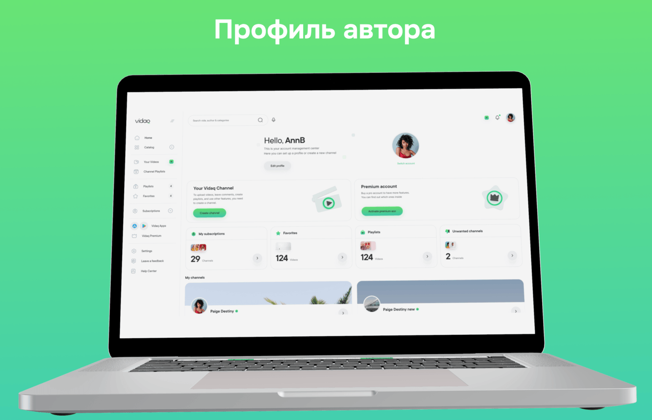 Профиль автора содержит те же разделы, но в нижней части экрана появляется информация о своих каналах. Он может перейти на них и попасть на следующий экран.