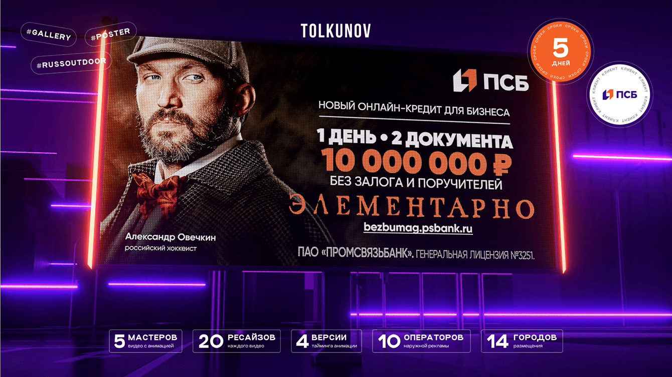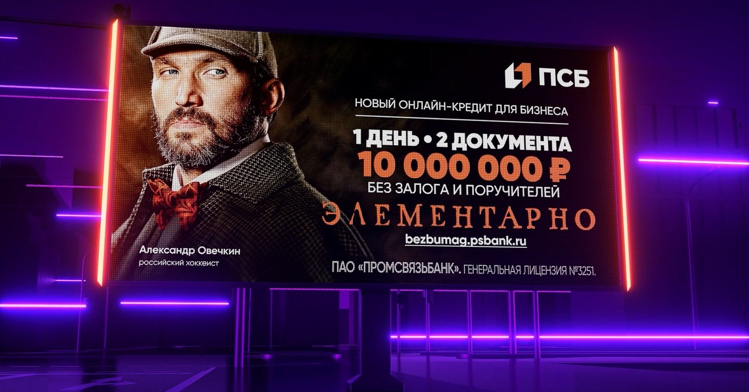 У ребят из ПСБ уже есть классные кейвижуалы с Александром Овечкиным в высоком разрешении. Наша задача перенести все элементы в другую среду для будущей анимации, сохранив все пропорции и качество графики, распределив по слоям. Затем все классно анимировать и подготовить видео по техническим требованиям операторов наружной рекламы.
