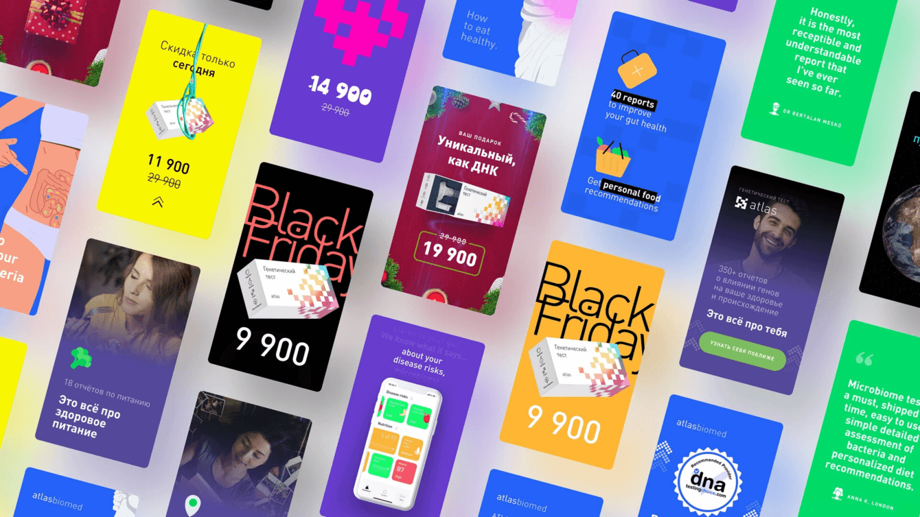 Атлас регулярно запускает рекламу по разным поводам: от нового года до 8 марта, от дня всех влюбленных до черной пятницы. С командой клиента обсуждаем концепцию, собираем раскадровку, анимируем и ресайзим в нужные размеры.