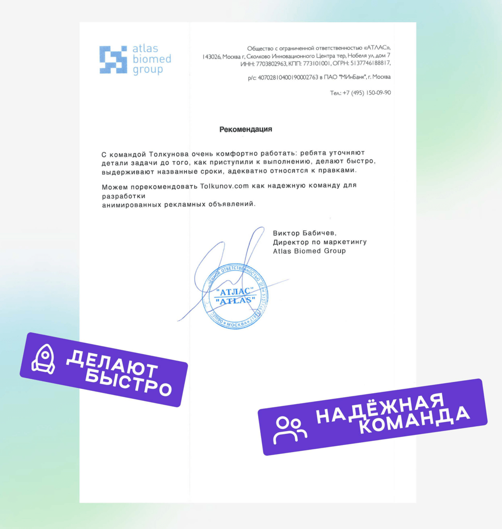 Можем порекомендовать Tolkunov.com как надежную команду для разработки анимированных рекламных объявлений».![]()