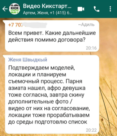 Представительство и производство TORFOT находится в Казахстане, так что для начала был создан общий рабочий чат, где прописывались основные вопросы и предложения как от заказчика, так и от нашего продакшена. Например, согласование сценария и раскадровки, покупка футажей, покупка аудио трека, выбор актеров, выбор голоса для английской озвучки и т.д.