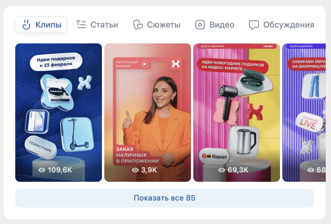 Вертикальный формат видео публикуют в телеграм-канале Халвы и в клипах и ленте во ВКонтакте. Фишка роликов - нативность и добавление трендовых переходов на постпродакшене.