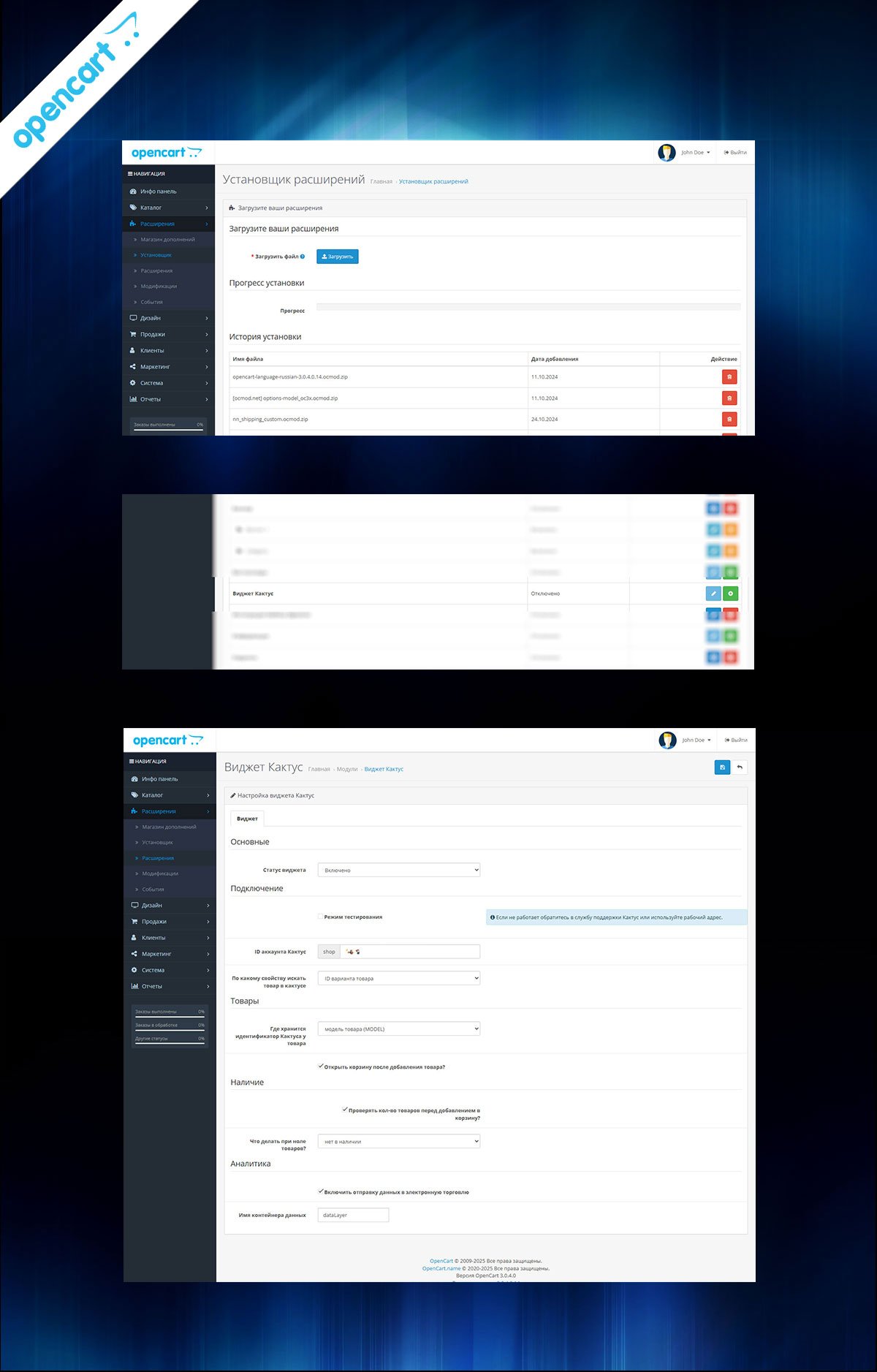 Создать виджет для интеграции умной корзины "Кактус" в CMS Opencart