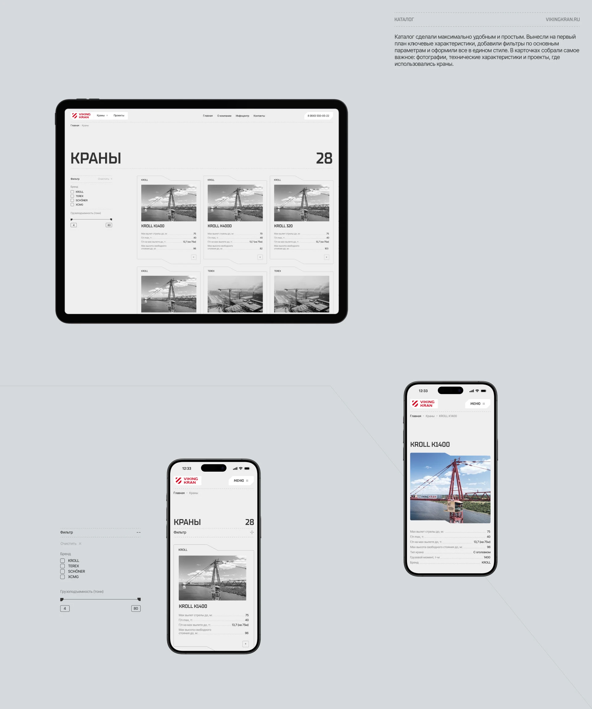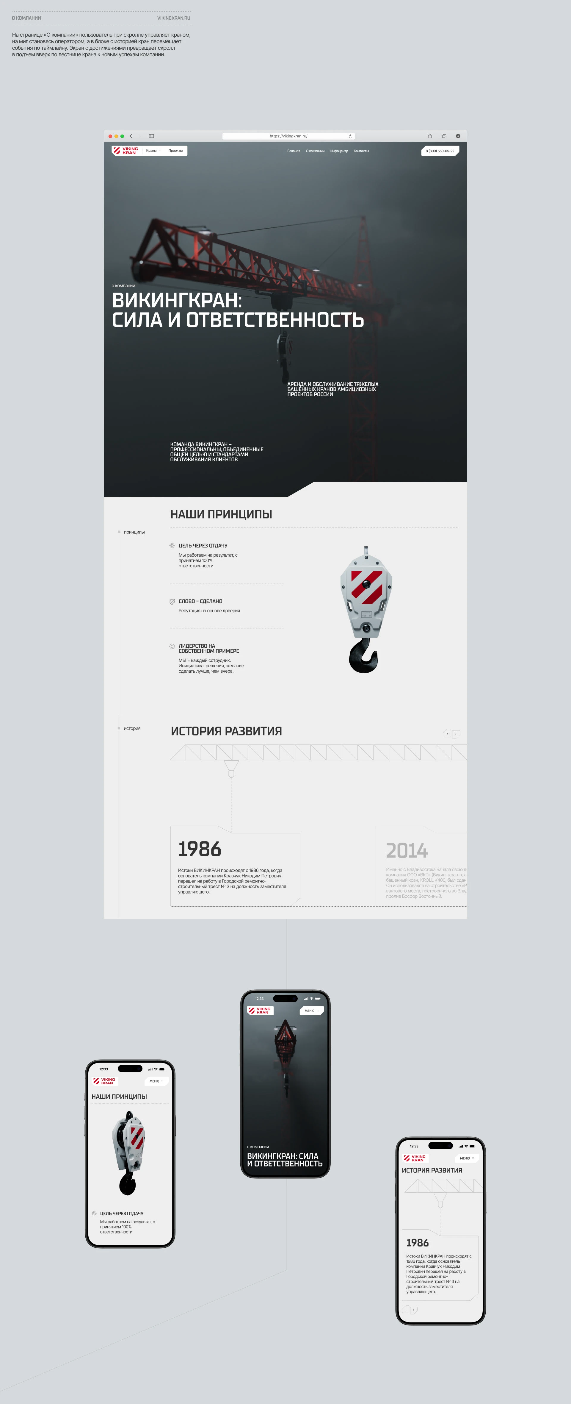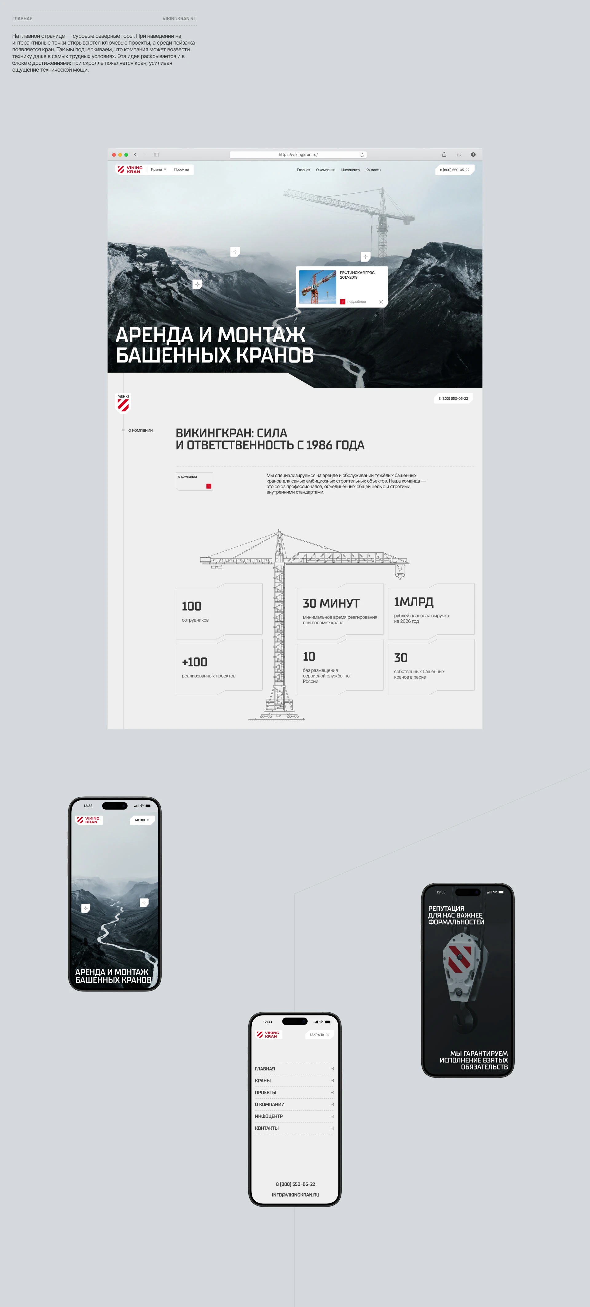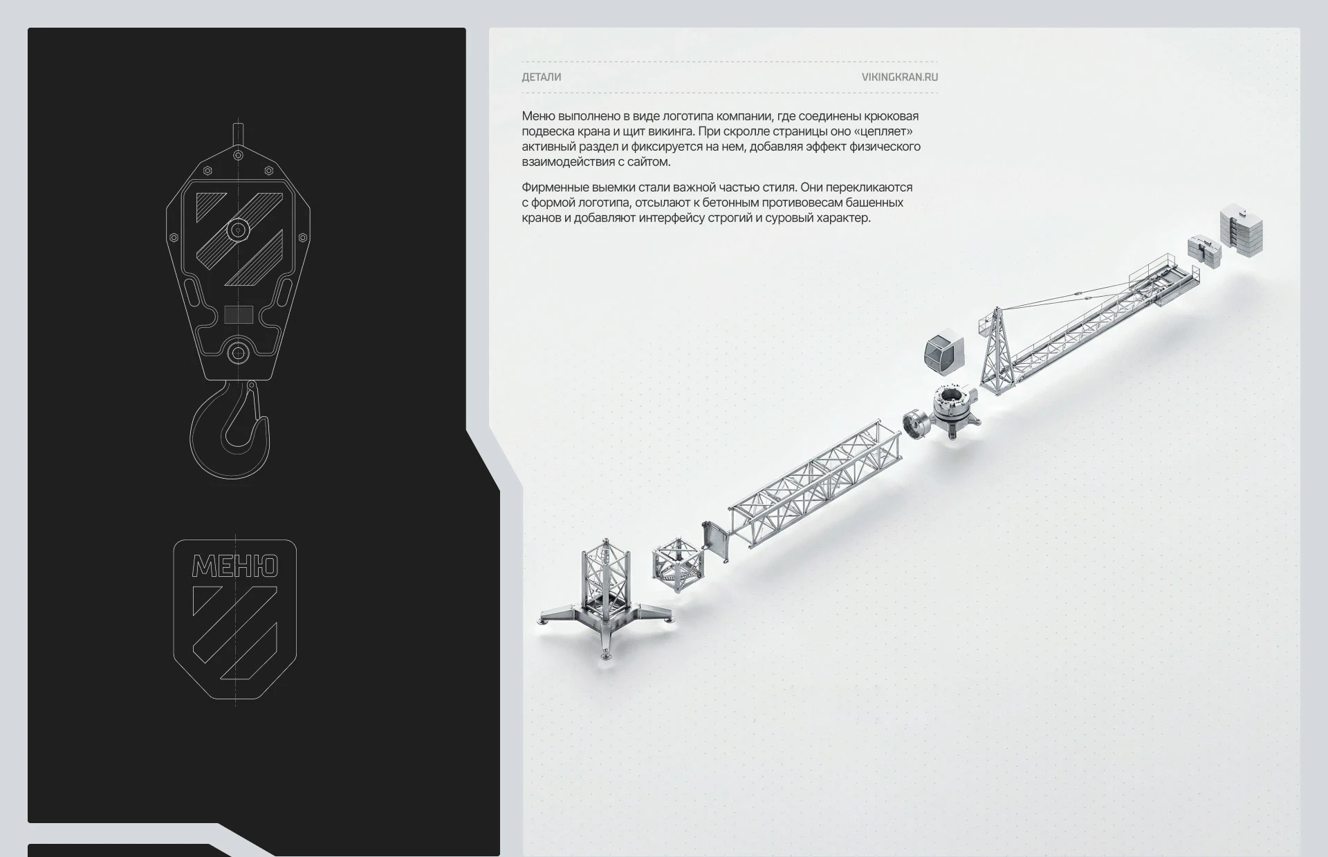 Разработали дизайн для компании «Викинг Кран», которая занимается арендой и монтажом башенных кранов. В основе лежит образ викинга: брутальность, сила и доблесть. Этот характер мы заложили в визуальный язык проекта, дополнив отсылкой к скандинавской мифологии.