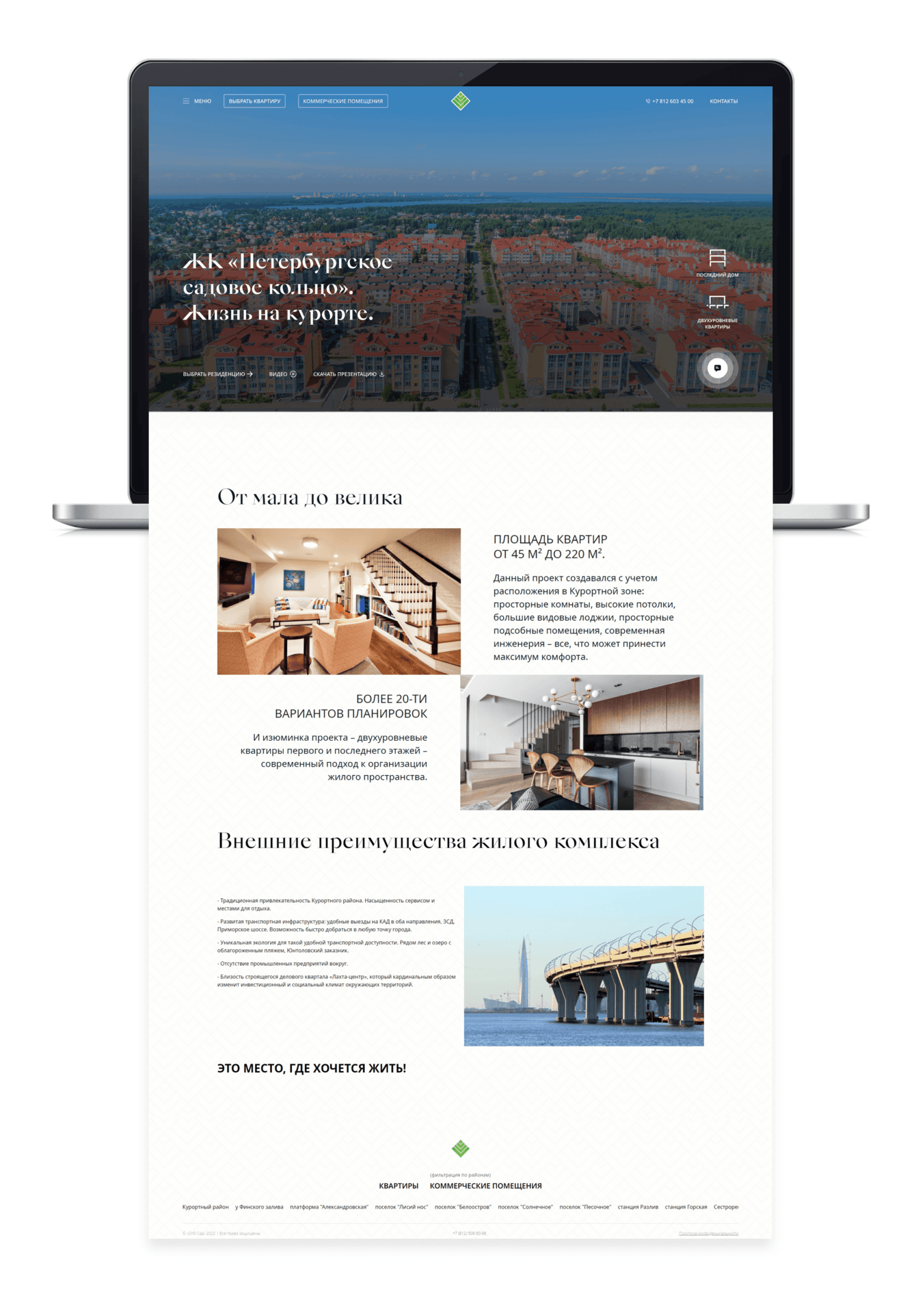 Мы создали удобный сайт-каталог, которым удобно пользоваться и который отображает все услуги, которые оказывает компании. Все этапы выбора квартиры прекрасно и удобно визуализированы. Дизайн выполнен в стиле современного минимализма . Мы взяли светлые цвета для фона, хорошо читаемый шрифт, сочные и большие фотографии объектов в высоком разрешении и разработали современный сайт для аудитории, которая хочет и может позволить себе покупку резиденций и видовых пентхаусов на Каменном острове. Дизайн макет был создан для десктопной, планшетной и мобильной версии.