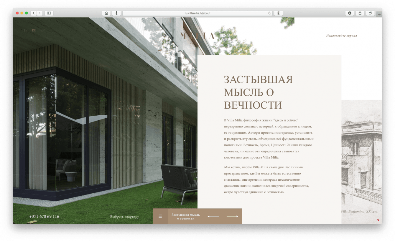 Авторы проекта постарались установить и раскрыть эту связь, объединив всё фундаментальными понятиями: Вечность, Время, Ценность Жизни каждого человека, и именно эти определения становятся ключевыми для проекта Villa Milia.