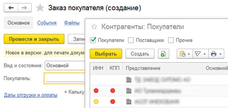 Красный — нет ИНН/КПП, желтый — данные требуют проверки.