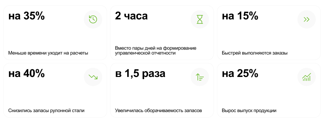 Система дала нам то, чего нам не хватало раньше — оперативность и точность данных для принятия решений. Раньше на расчет плана резки у нас уходило несколько дней, и мы все равно не были уверены. Сейчас мы за 10 минут видим всю картину по остаткам и можем принять оптимальное решение. Мы теперь не предполагаем, а точно знаем, какие ресурсы у нас есть и как их наиболее эффективно использовать Система стала нашим цифровым двойником производства.