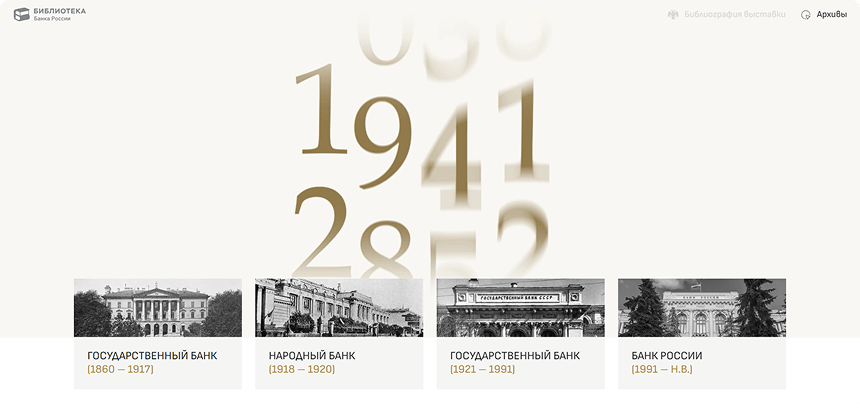 Мы разработали интерактивную виртуальную выставку на базе проекта «Библиотека Банка России», объединив разрозненные архивные материалы в единую цифровую экспозицию. Продумали структуру, логику и сценарий повествования, представив историю Банка России через ключевые этапы его развития и биографии председателей. Реализовали интерфейс с уникальным визуальным и навигационным подходом для каждой эпохи, продумали UI/UX, чтобы упростить работу с большим объемом материалов и сделать историю банка понятной для широкой аудитории