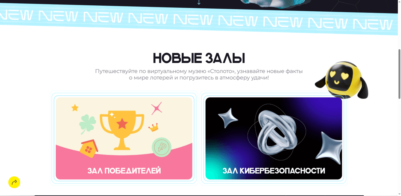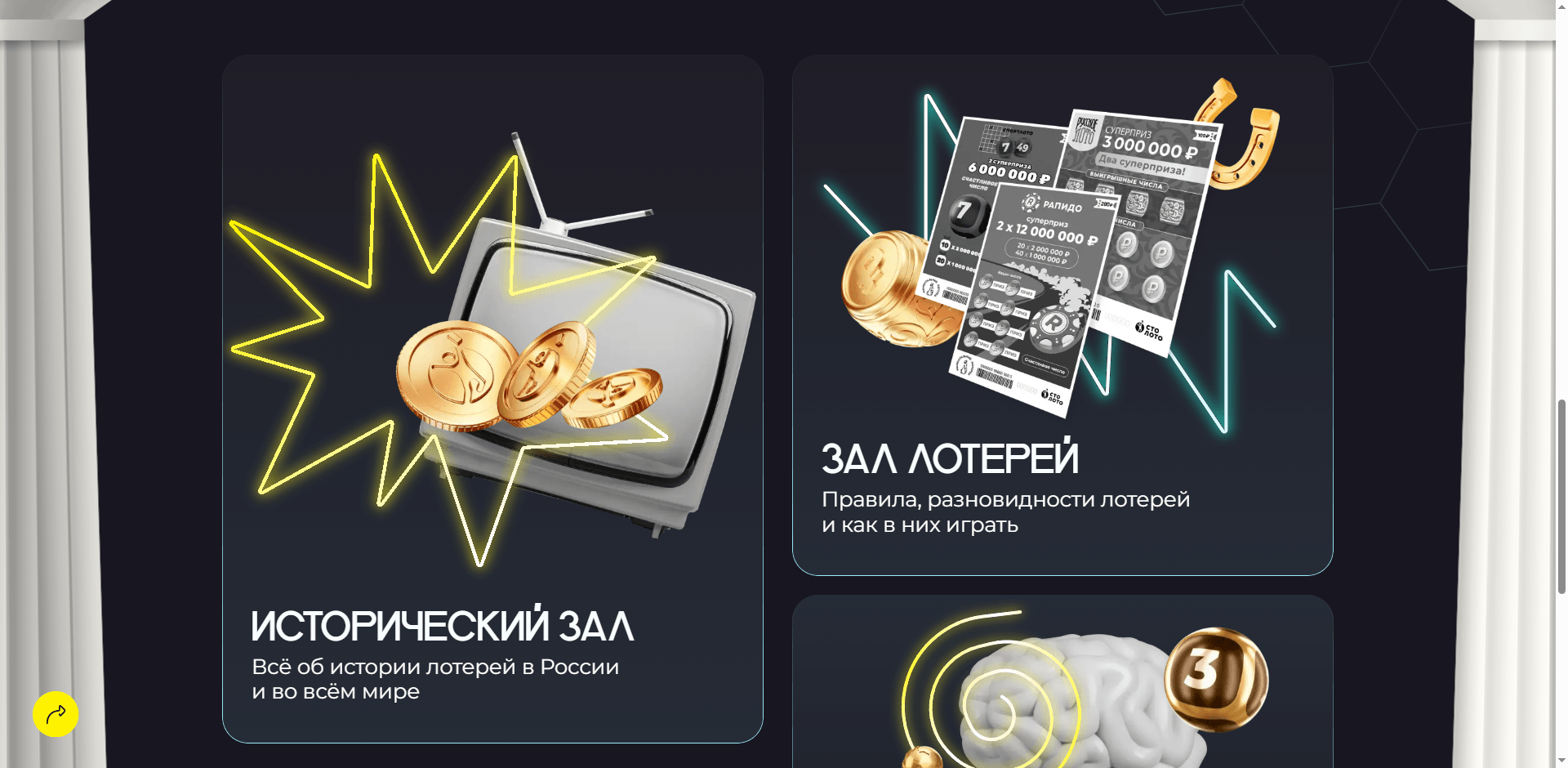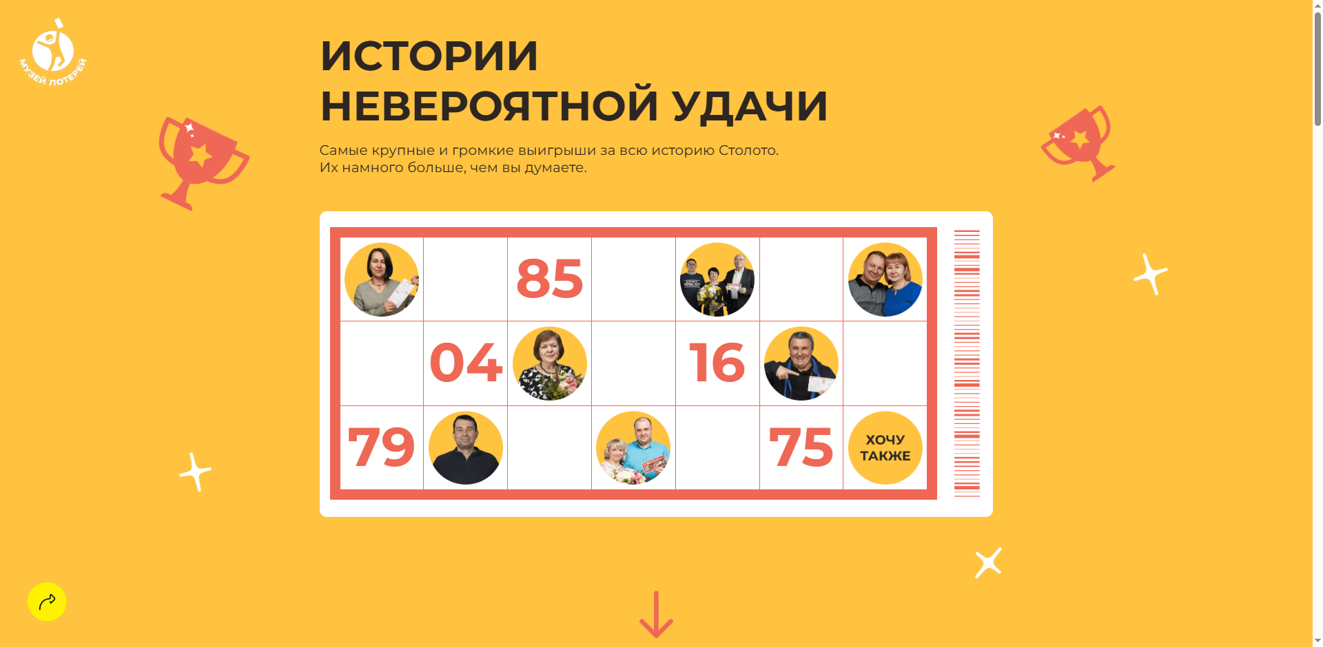 Разработать многостраничный интерактивный виртуальный музей, который через погружение в историю лотерей, истории побед и культурный контекст укрепит лояльность аудитории к бренду.
