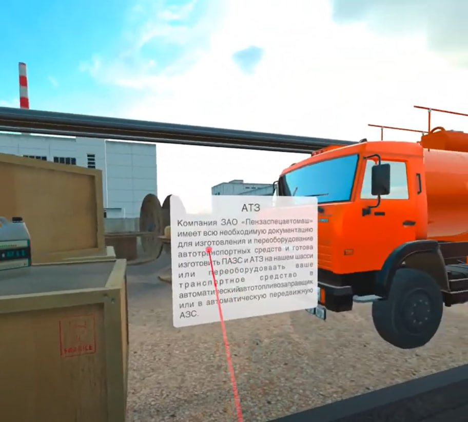 При загрузке приложения пользователь попадает в раздел обучения, где на примере первого объекта демонстрируются его возможности. Локация, в которой оказывается зритель, — вымышленный заводской комплекс.