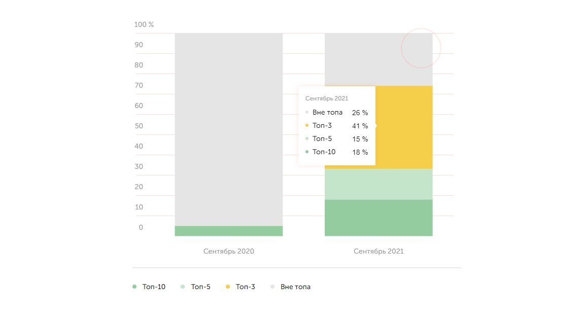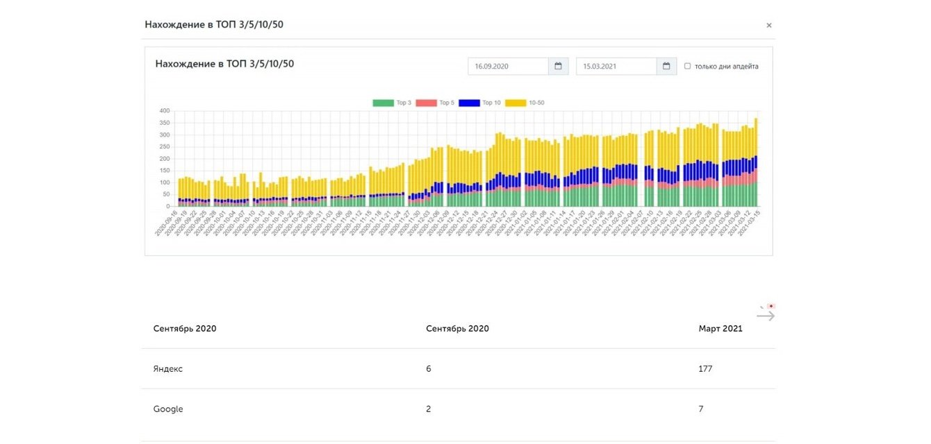 За полгода активной работы нам удалось вывести в ТОП-3 из «ниоткуда» большую часть запросов.