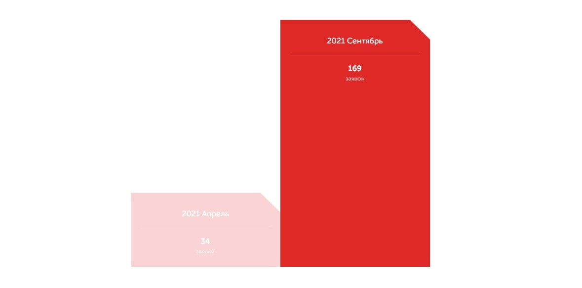 После установки целей в Яндекс. Метрике в марте 2021 мы смогли отследить данные по конверсиям. Так, мы увидели 5Х увеличение заявок с апреля по сентябрь 2021.