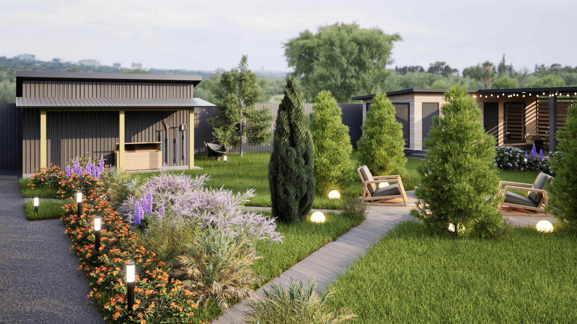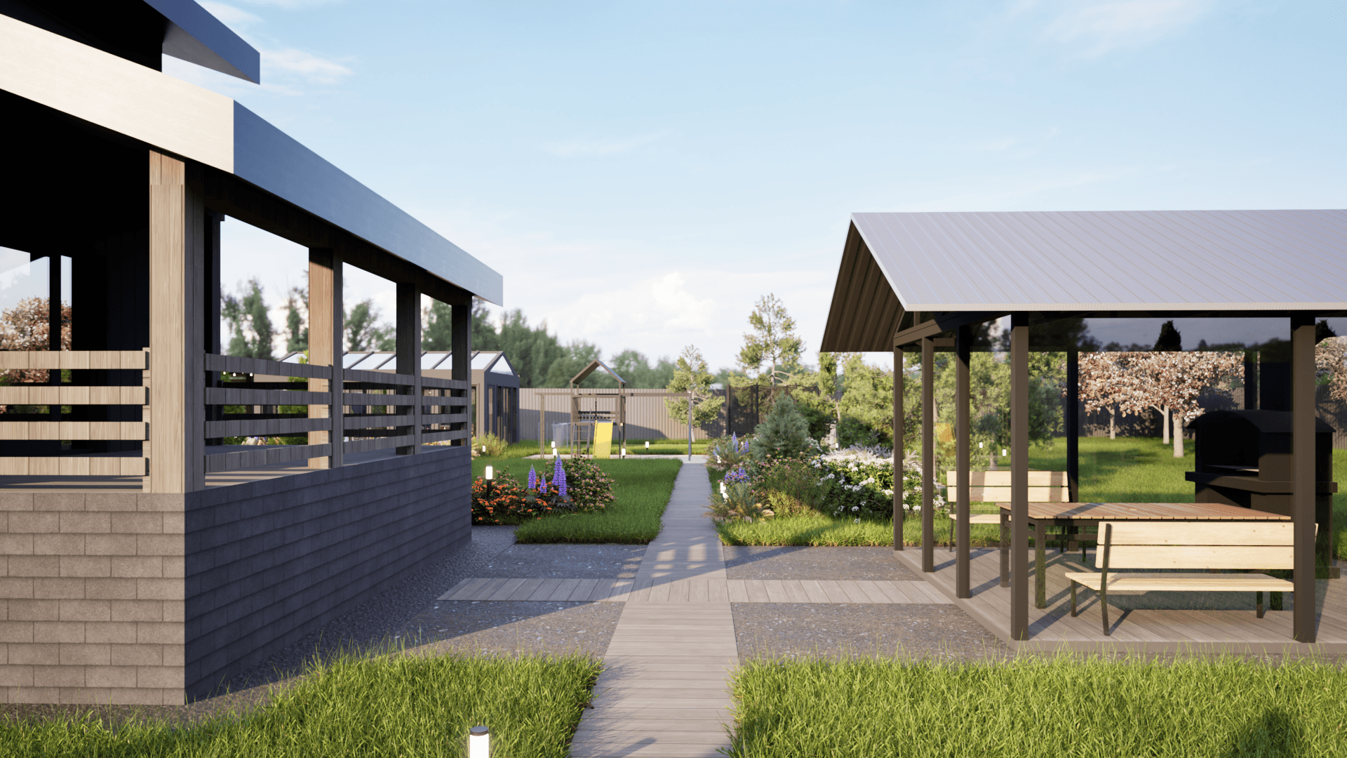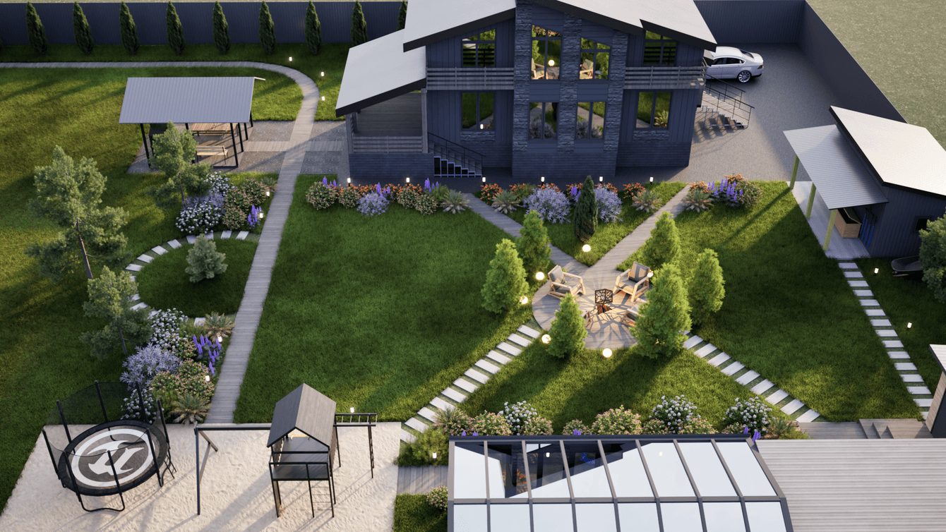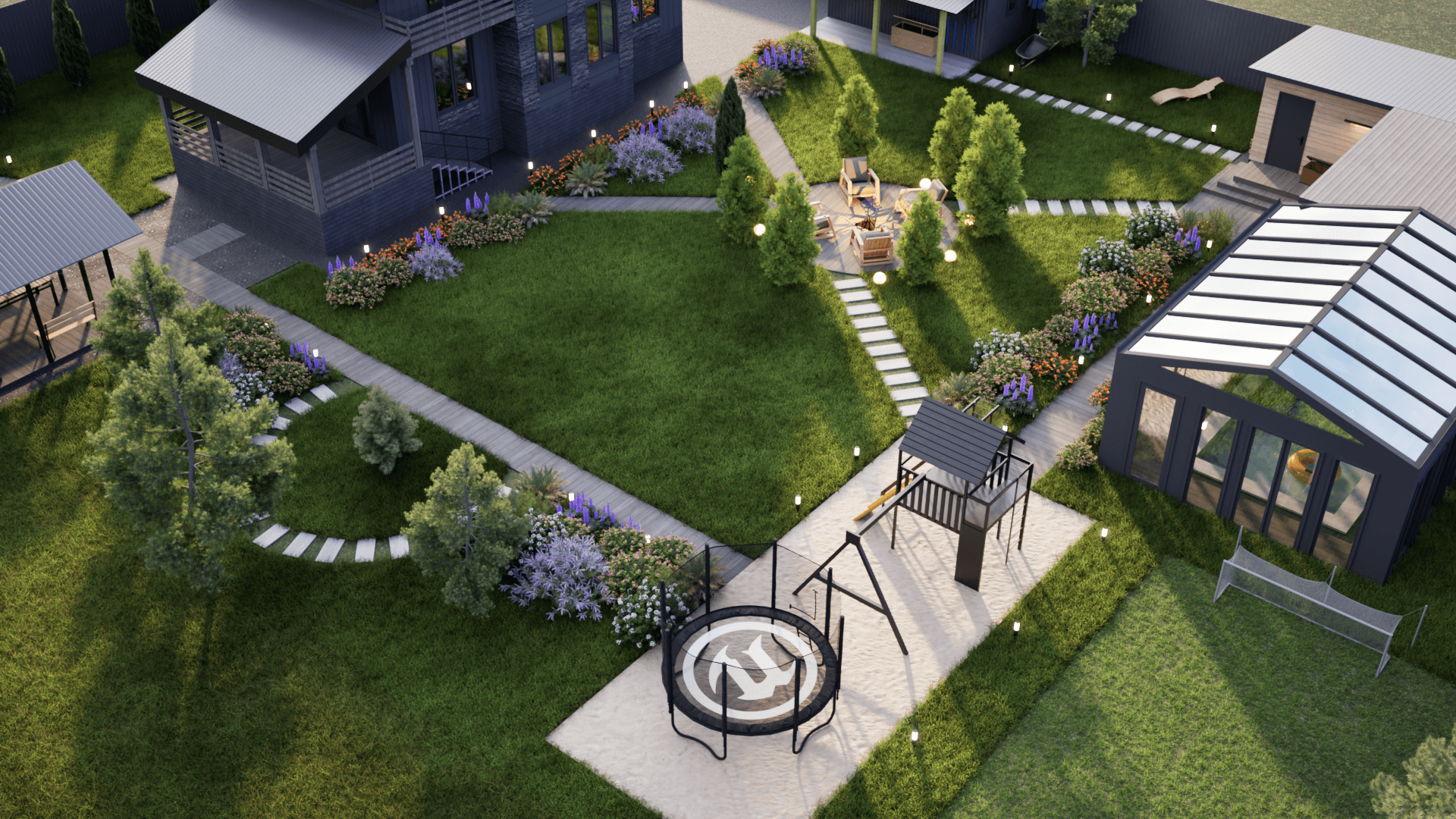На основании предоставленных материалов и пожеланий была разработана комплексная 3D-визуализация участка площадью 30 соток в Сергиево-Посадском городском округе. Работа включает существующие объекты (дом, две хозяйственные постройки, беседку, костровую зону, игровую зону для детей) с перспективой будущего обустройства.