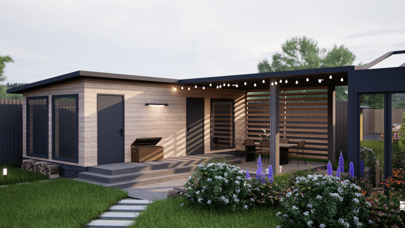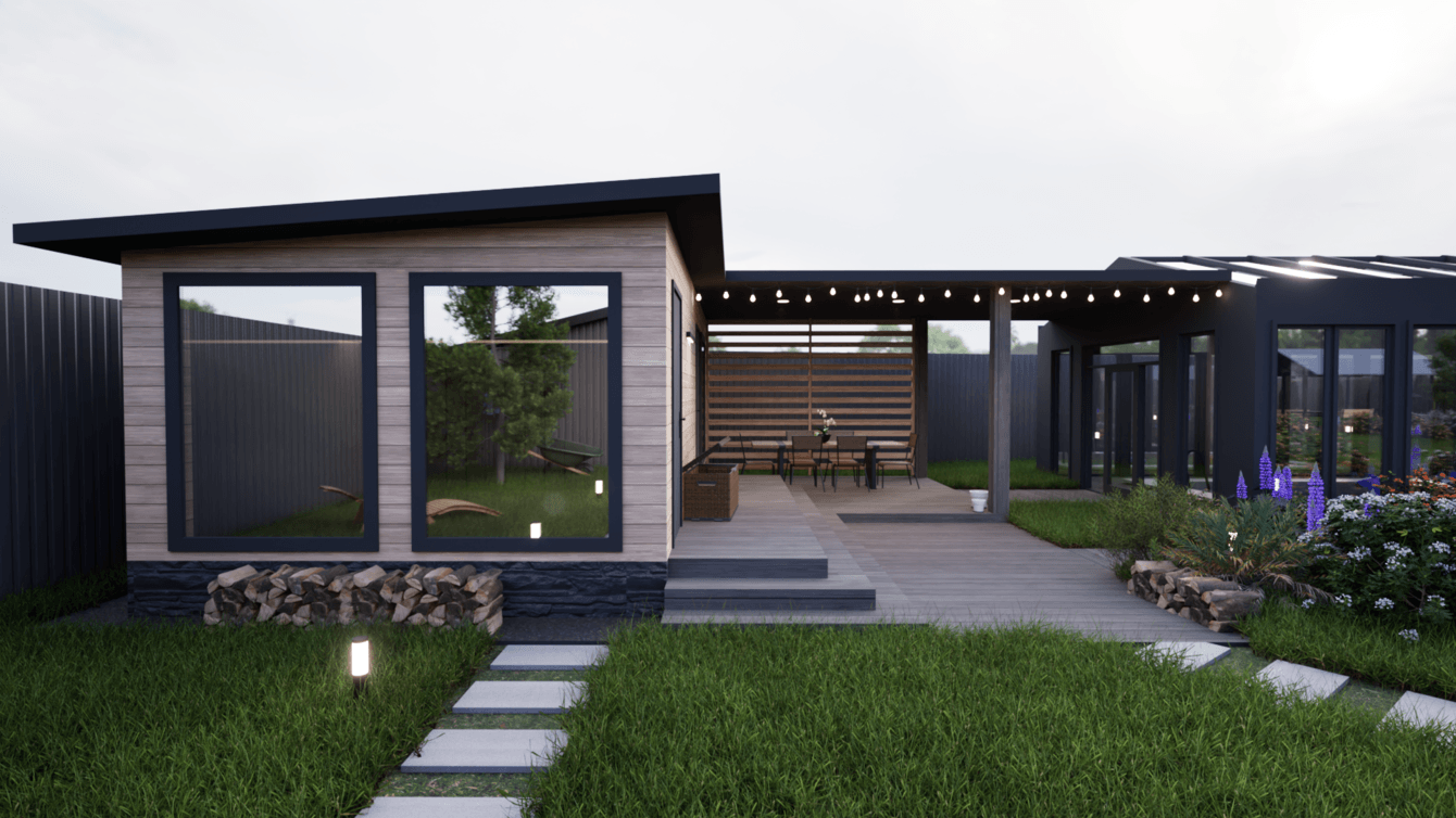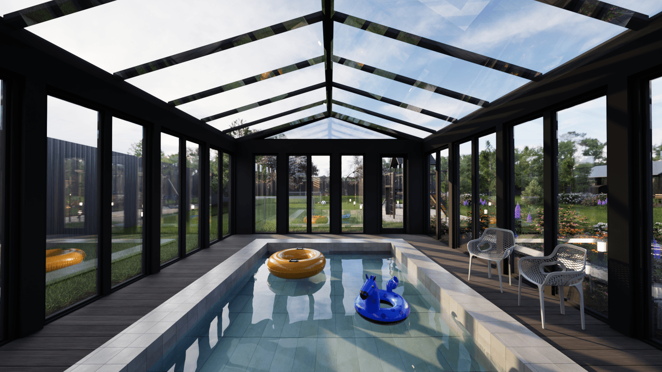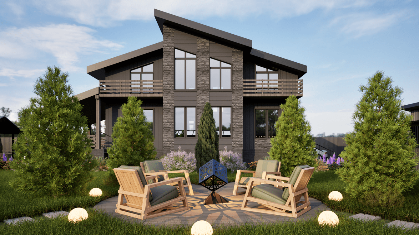 Визуализация выполнена с учетом временного отказа от бассейна, но с сохранением возможности его последующего внедрения без нарушения общей концепции. Все решения направлены на создание комфортной среды отдыха, где каждая зона функциональна и эстетически привлекательна.