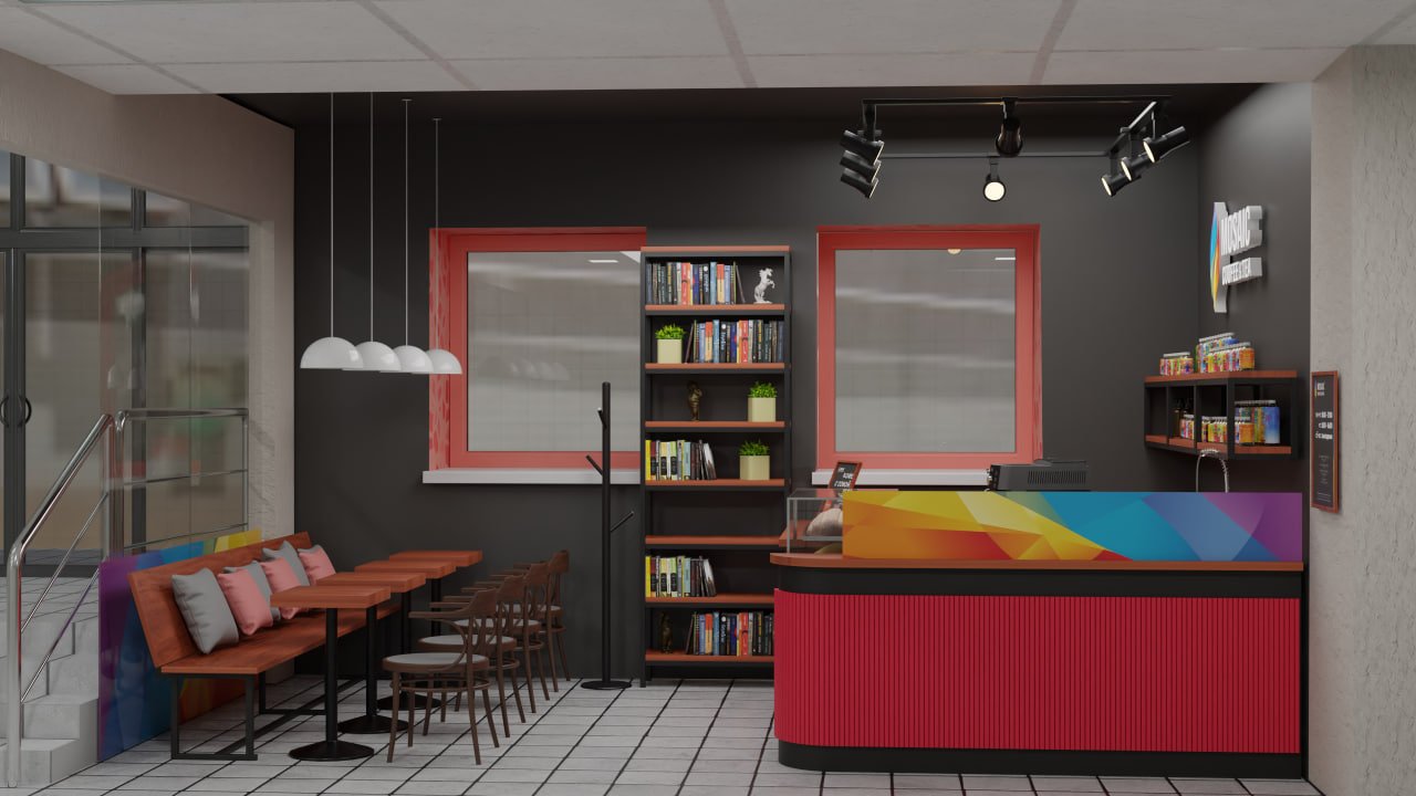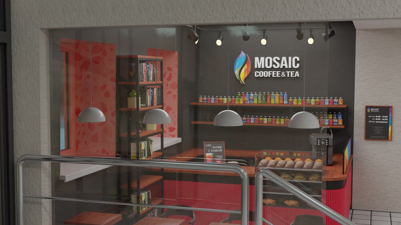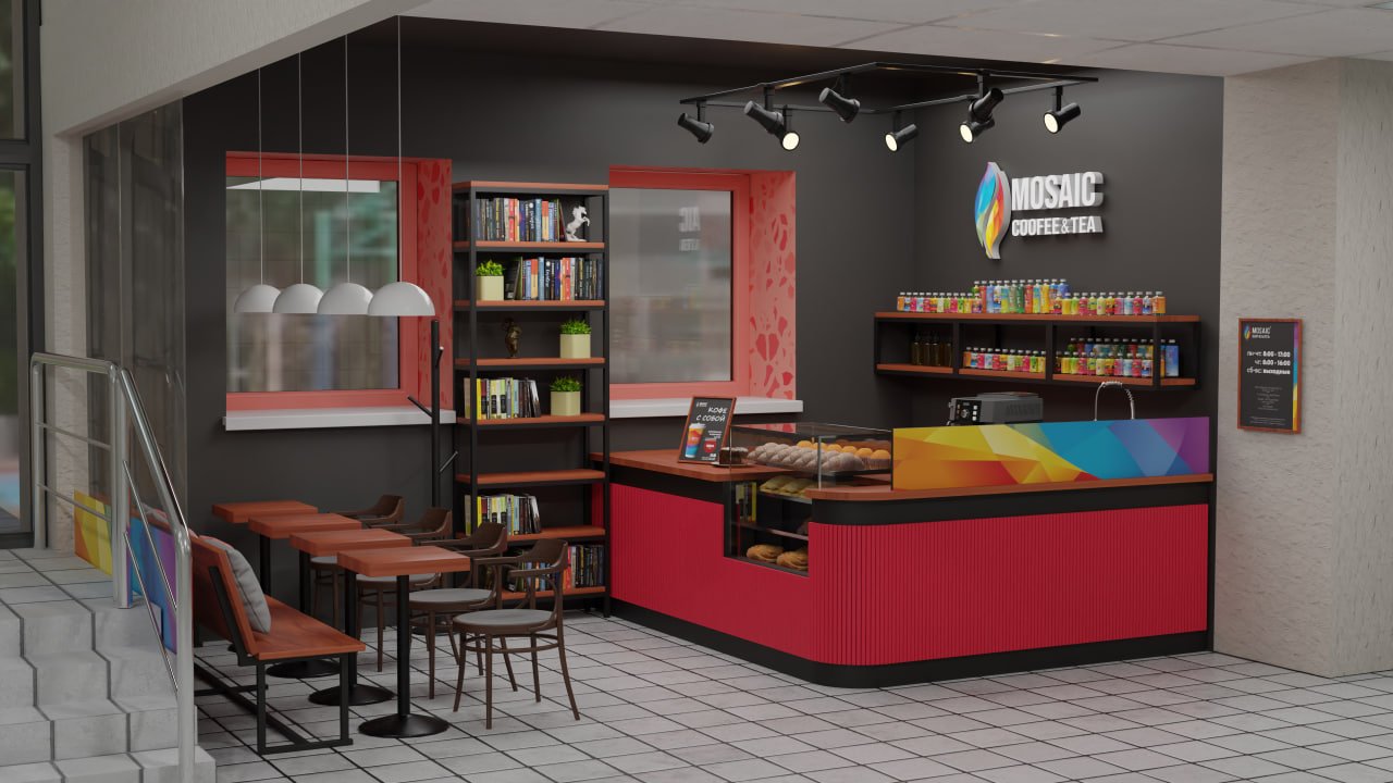 Требовалось сделать визуализацию кофейни для арендатора. Кофейня располагается в секции размером 2,8 м на 5,4 м, высота потолка 3 м. Имелась схема расстановки и референсы оформления (фото существующей кофейни, откуда ориентировались на общее оформление. Общая площадь: 15,12 м2.