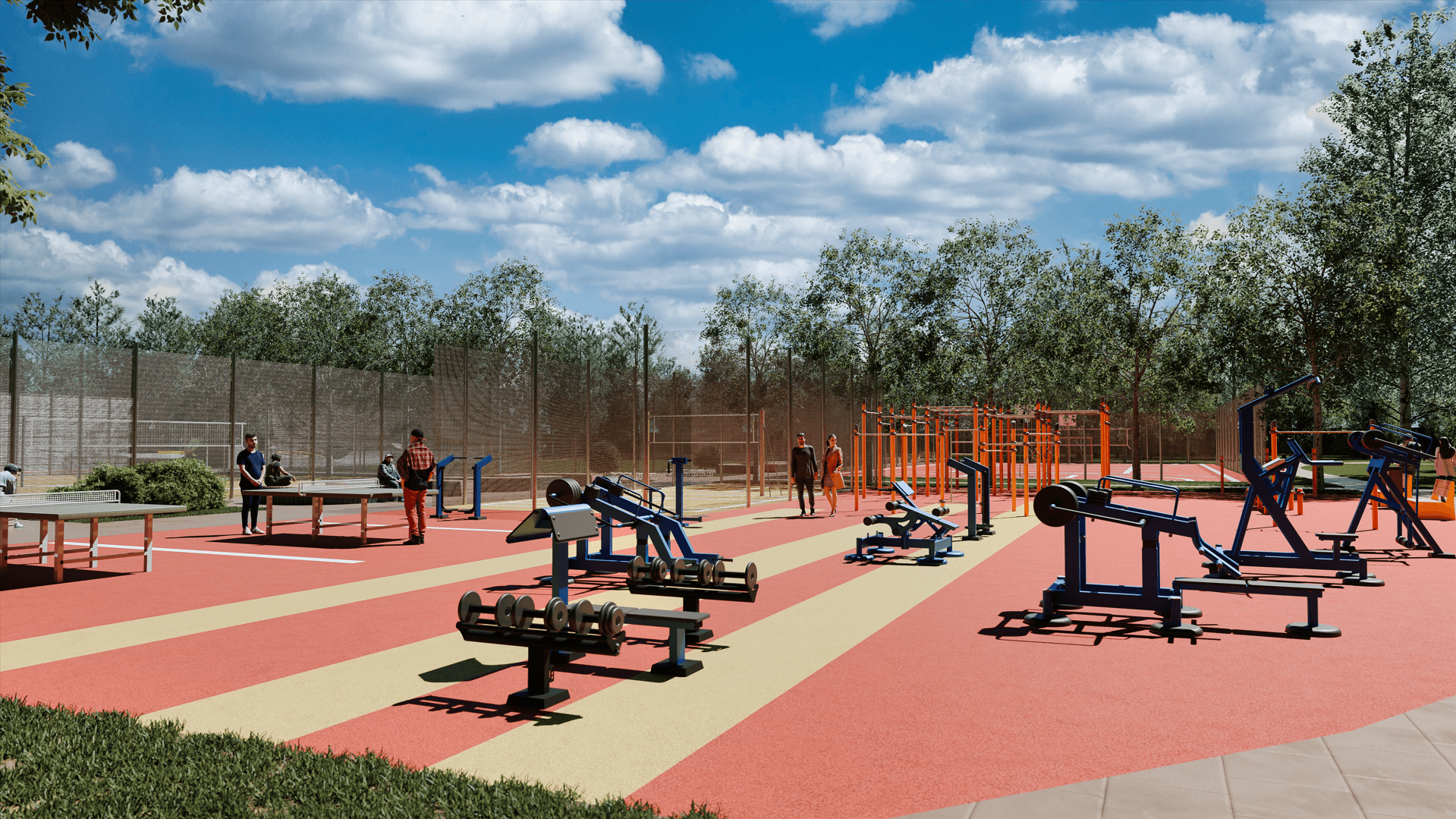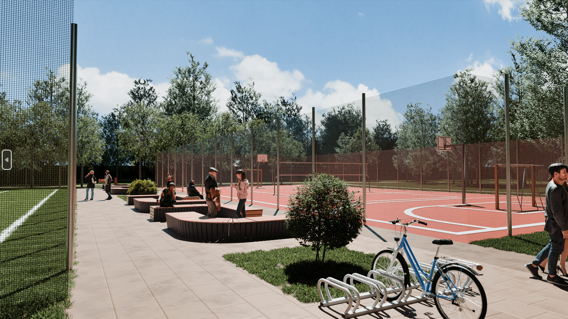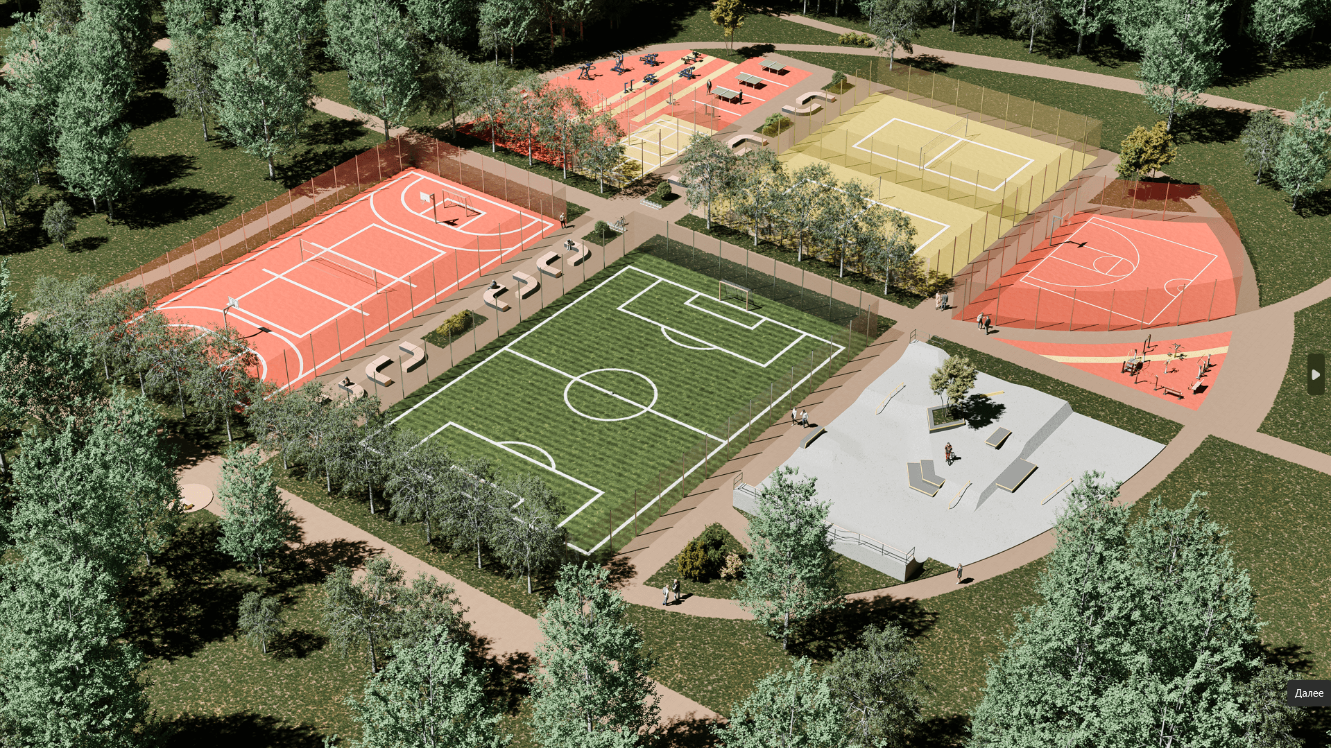 В рамках проекта была разработана комплексная 3D-визуализация современной спортивной зоны, объединяющей различные виды активностей для разных возрастных групп. Основной задачей стало создание гармоничного пространства, где каждая зона логично вписывается в общую планировку, сохраняя функциональность и эстетику.