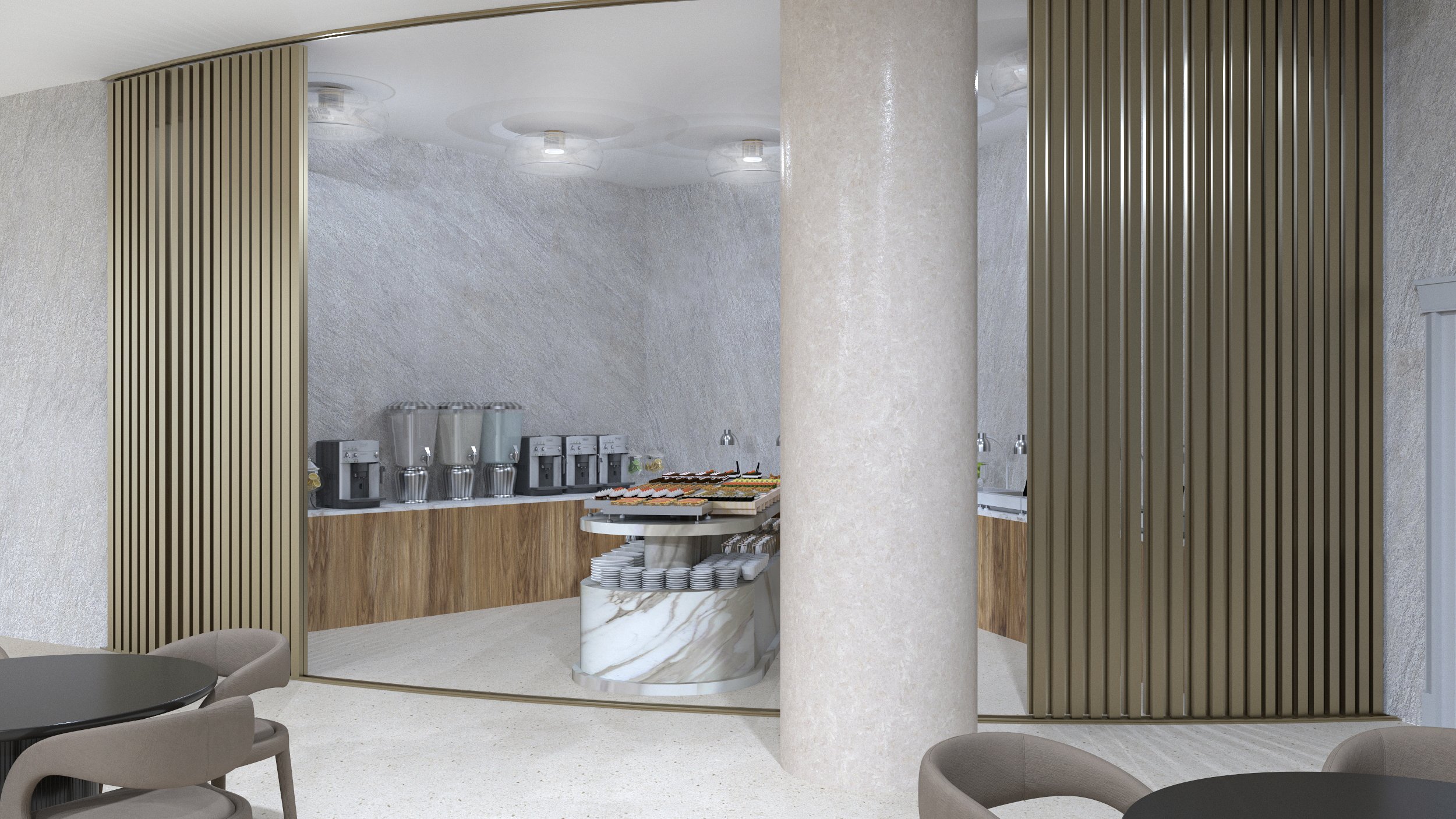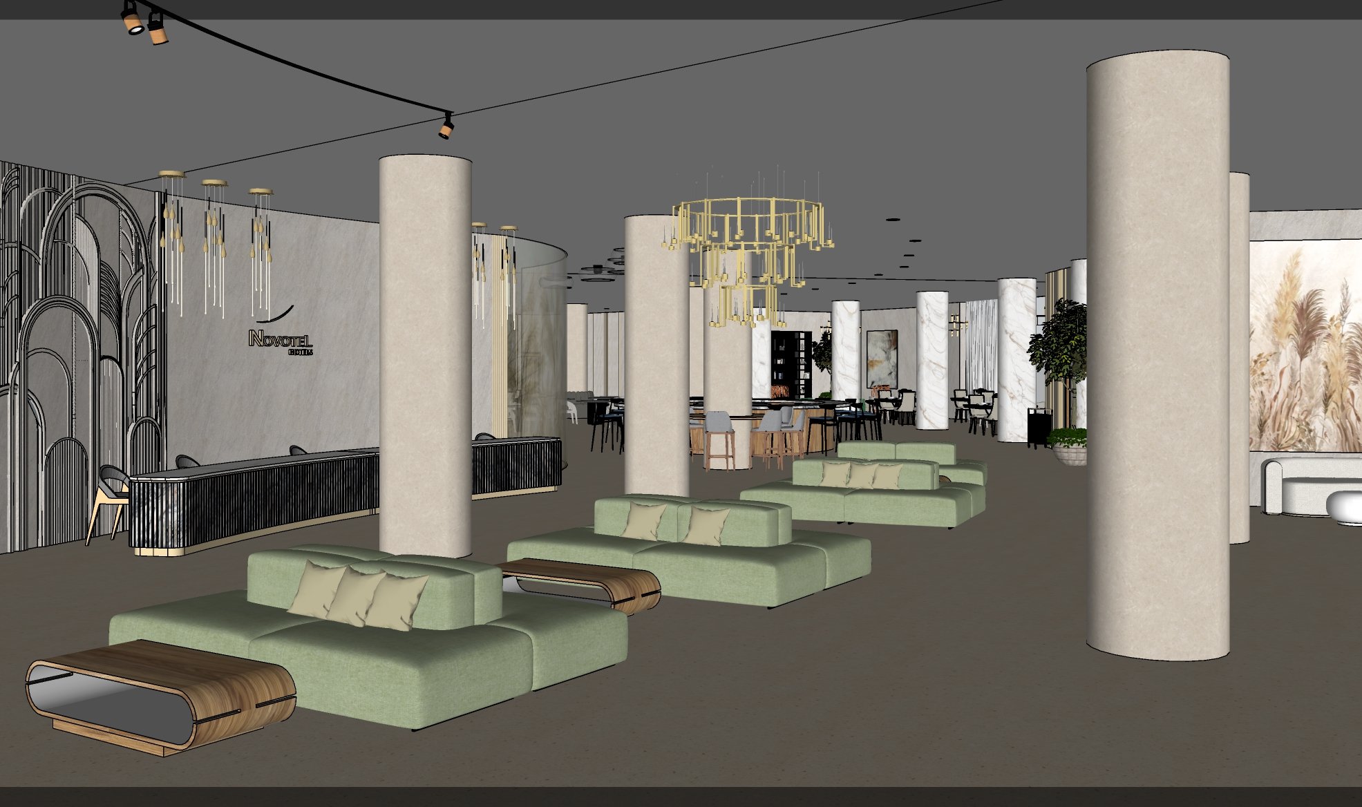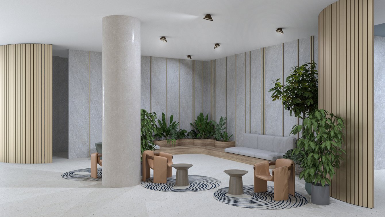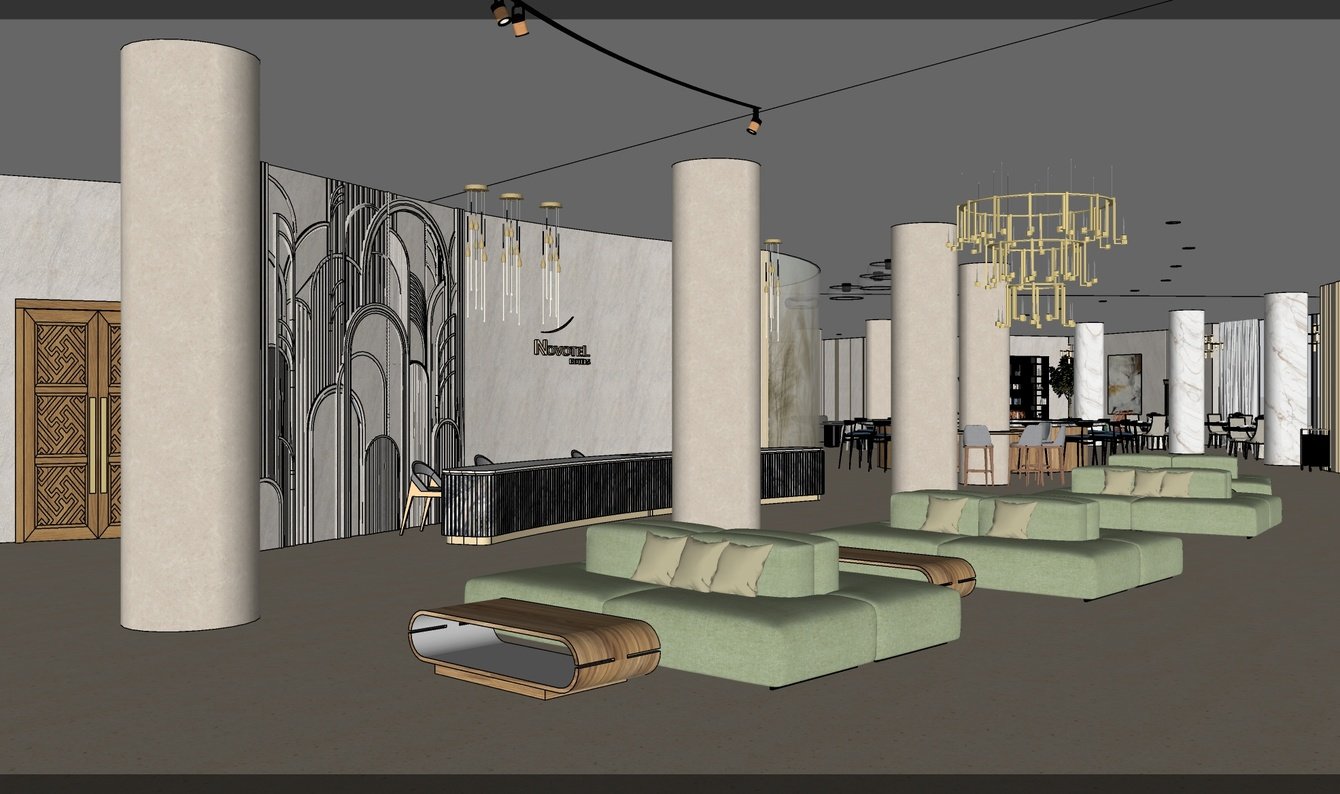 Для завершения работы согласовали пять ракурсов, чтобы показать весь холл со всеми участками помещения.