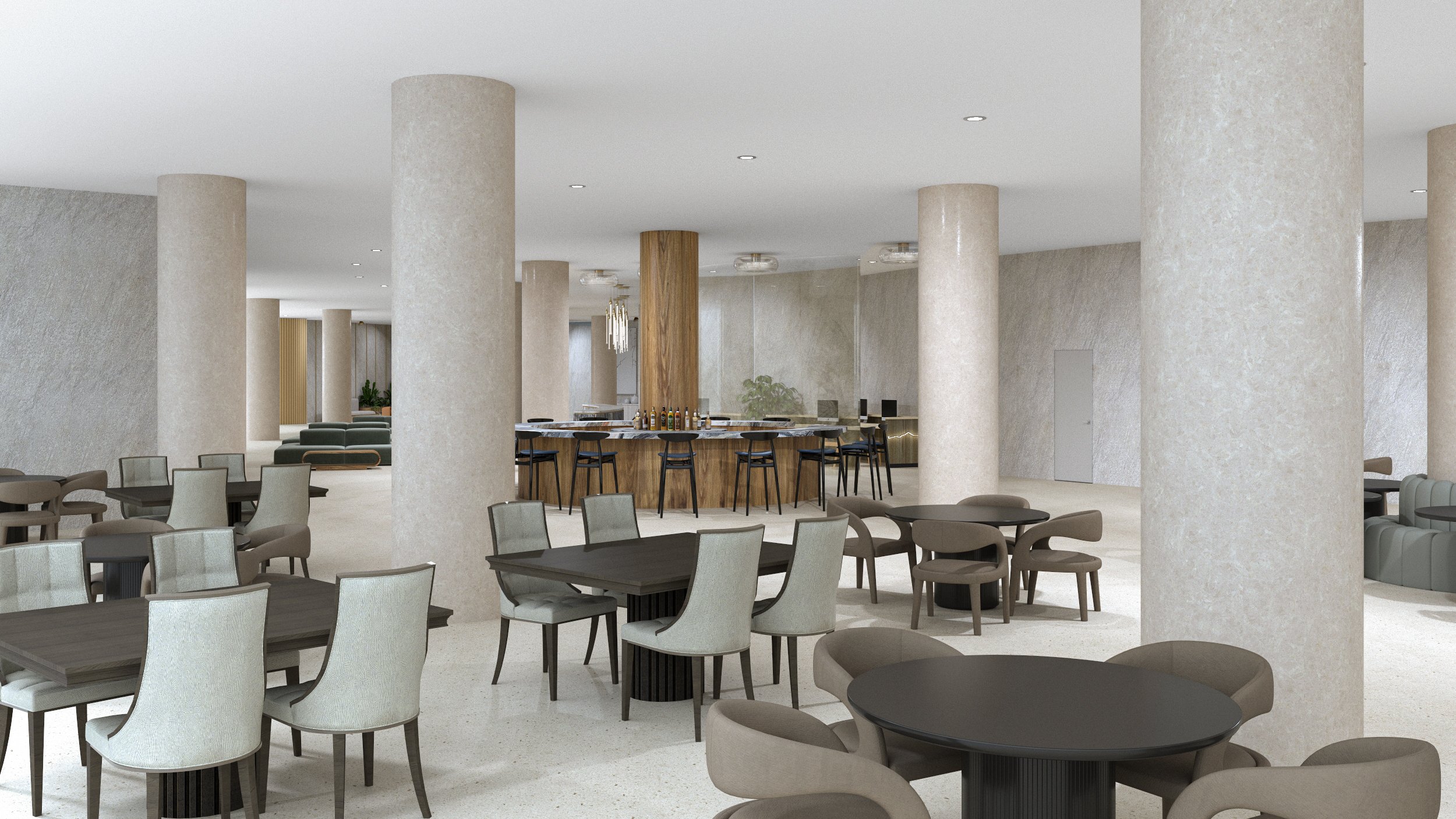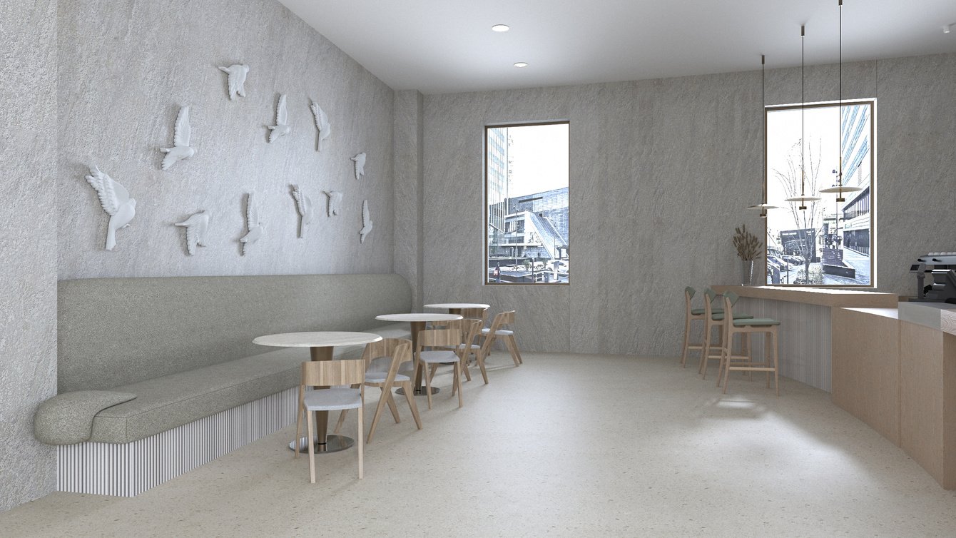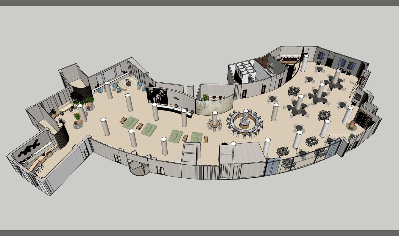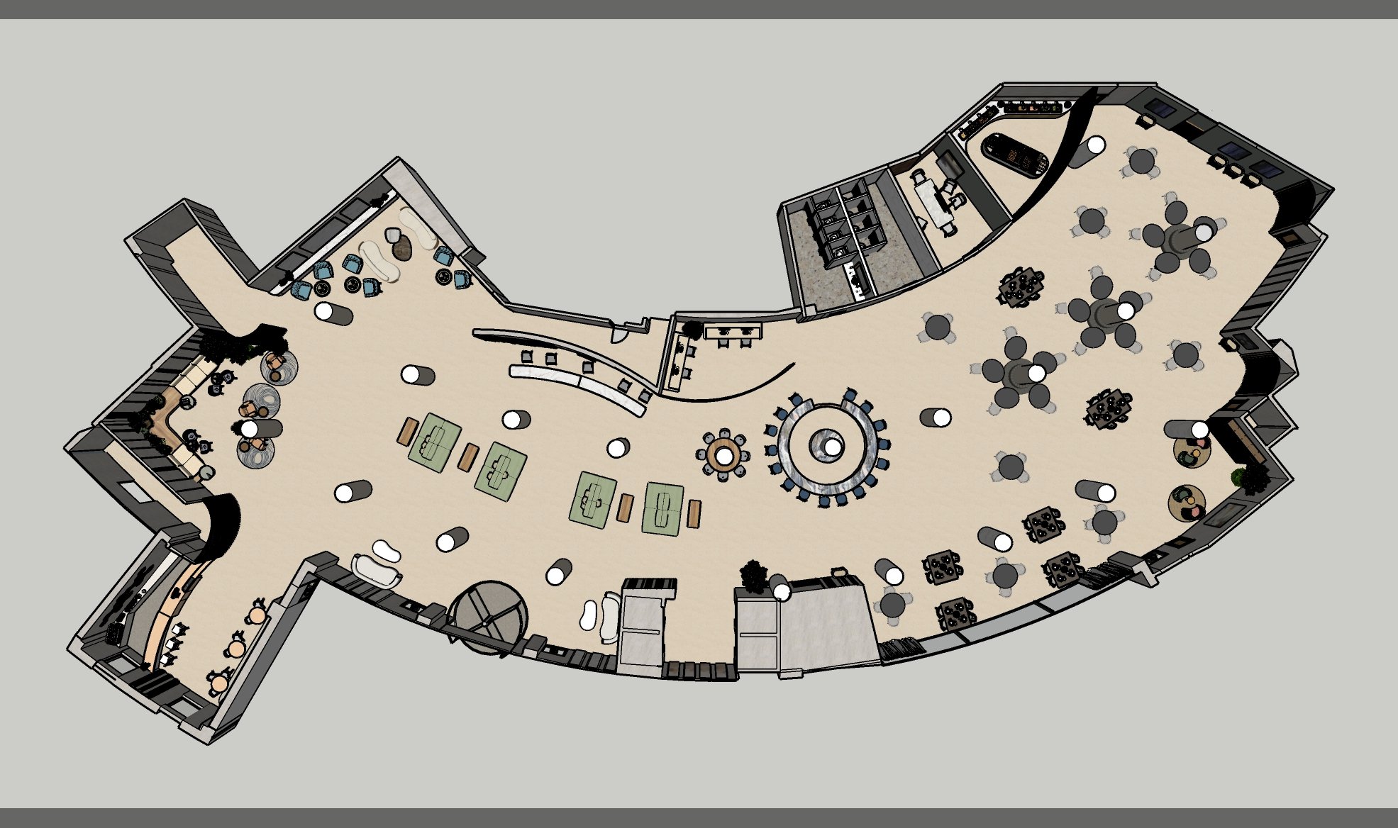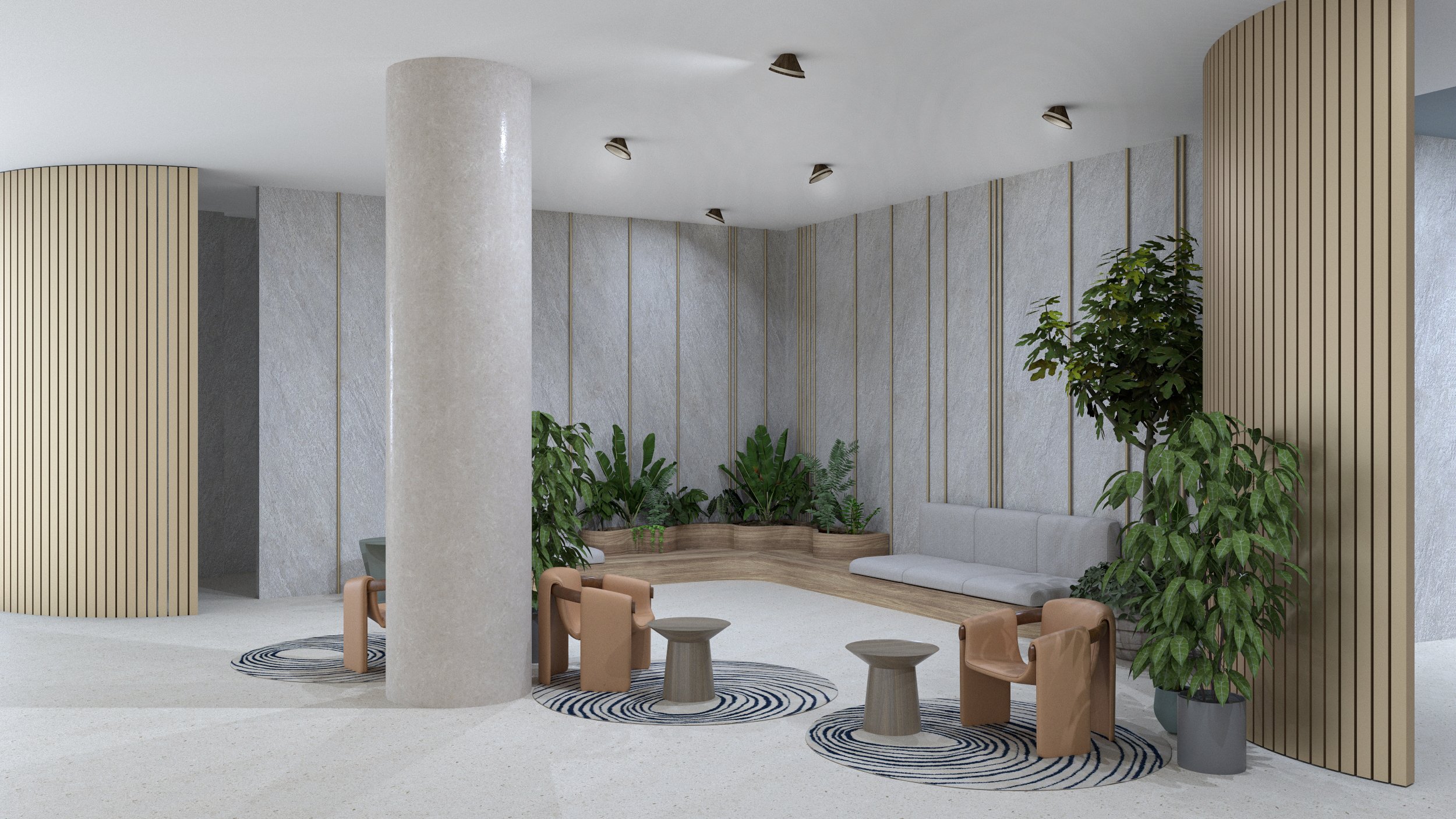 Для завершения работы согласовали пять ракурсов, чтобы показать весь холл со всеми участками помещения.