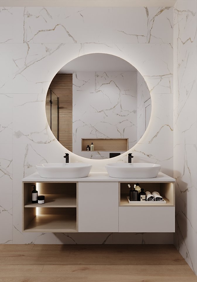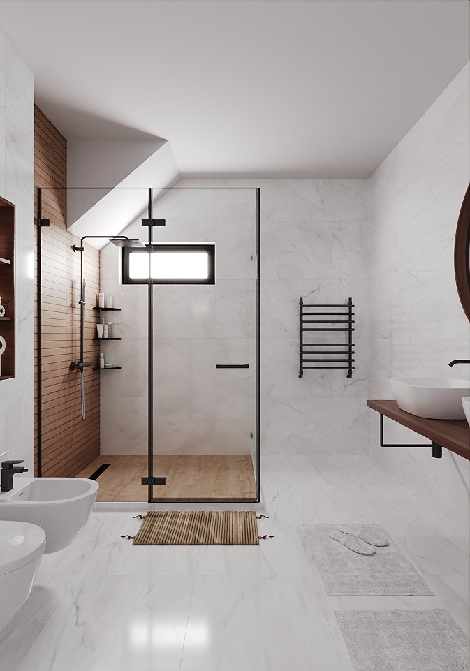 Требовалось реализовать дизайн-визуализации ванных комнат по требованиям клиента.