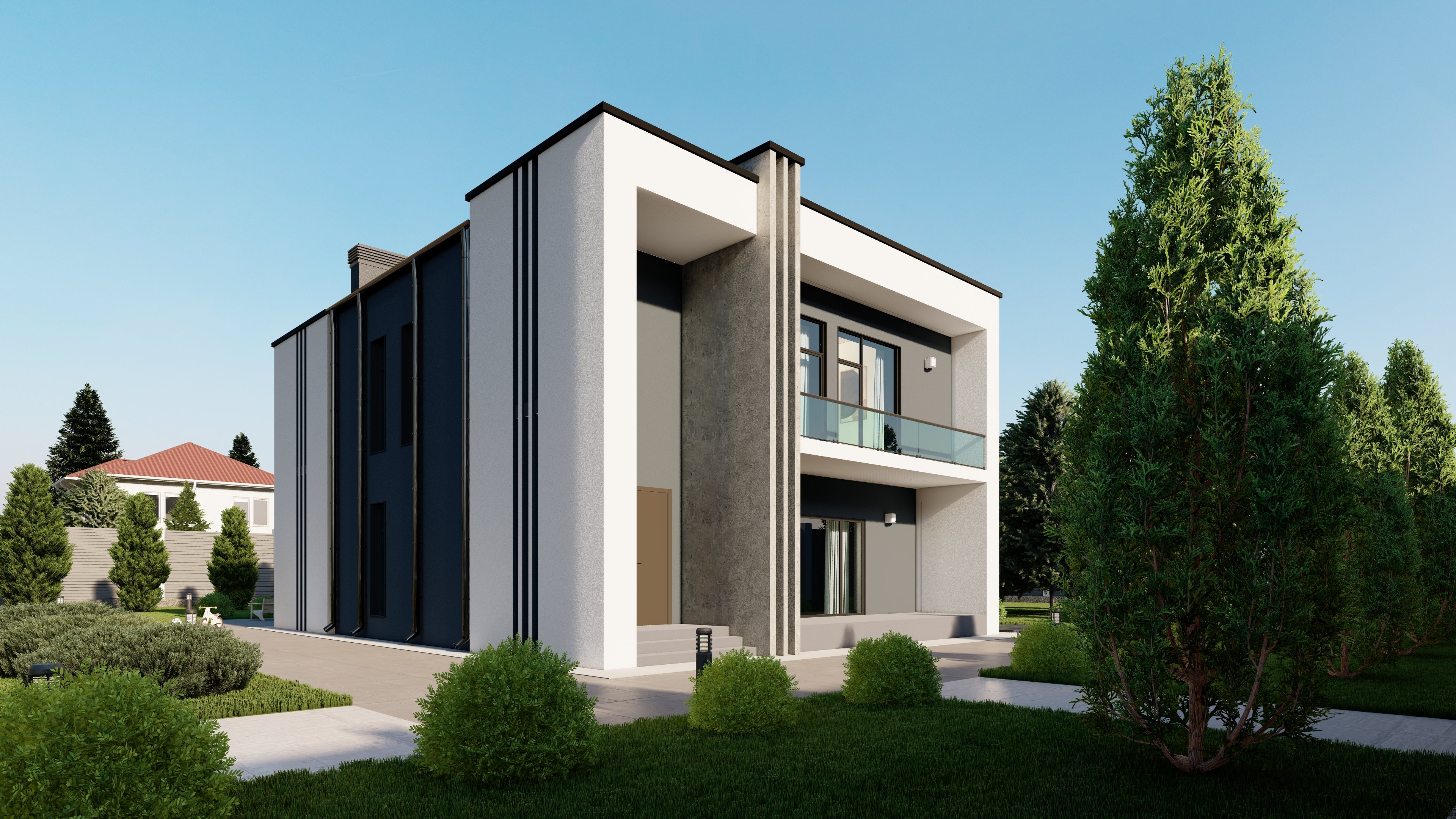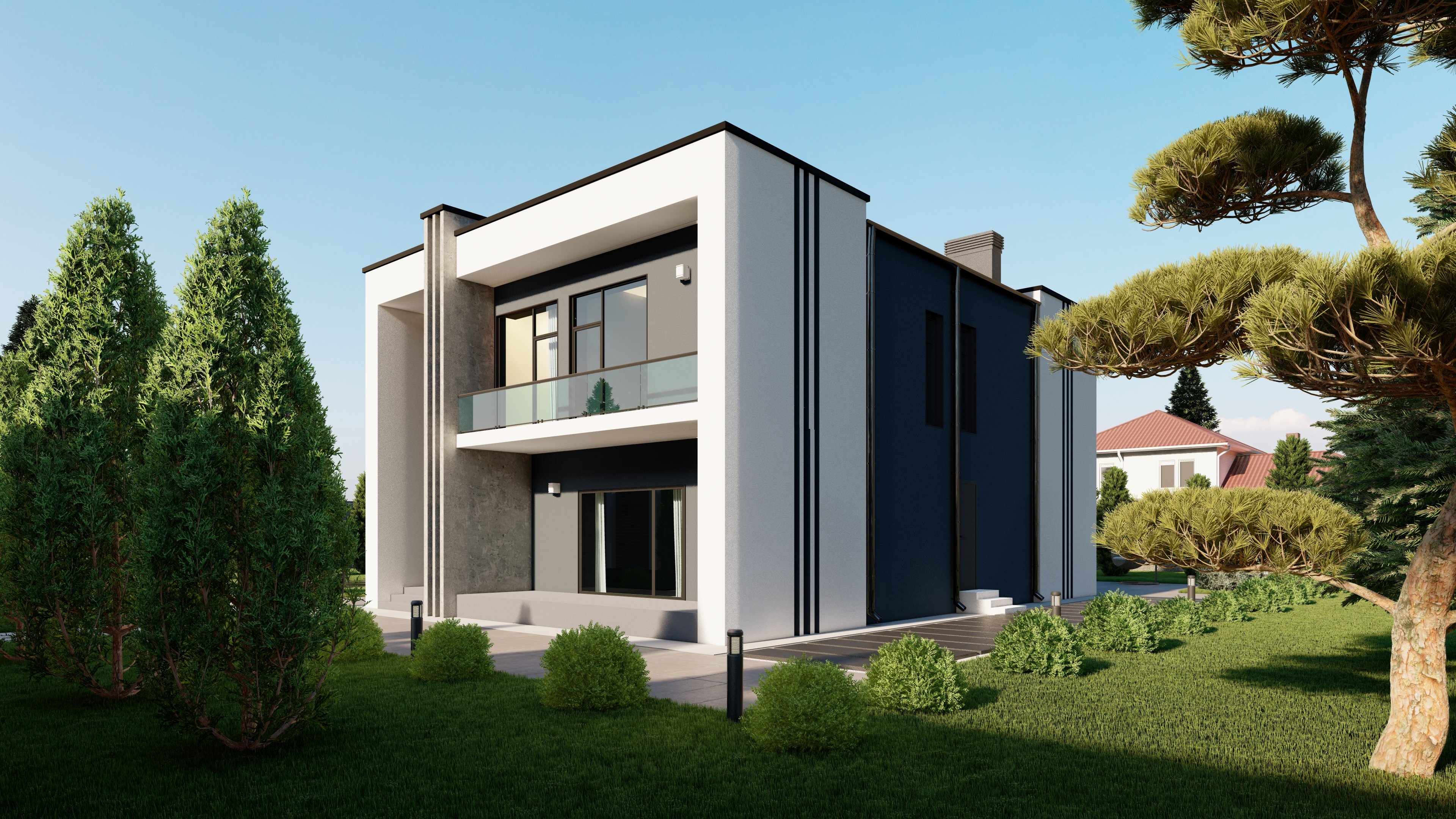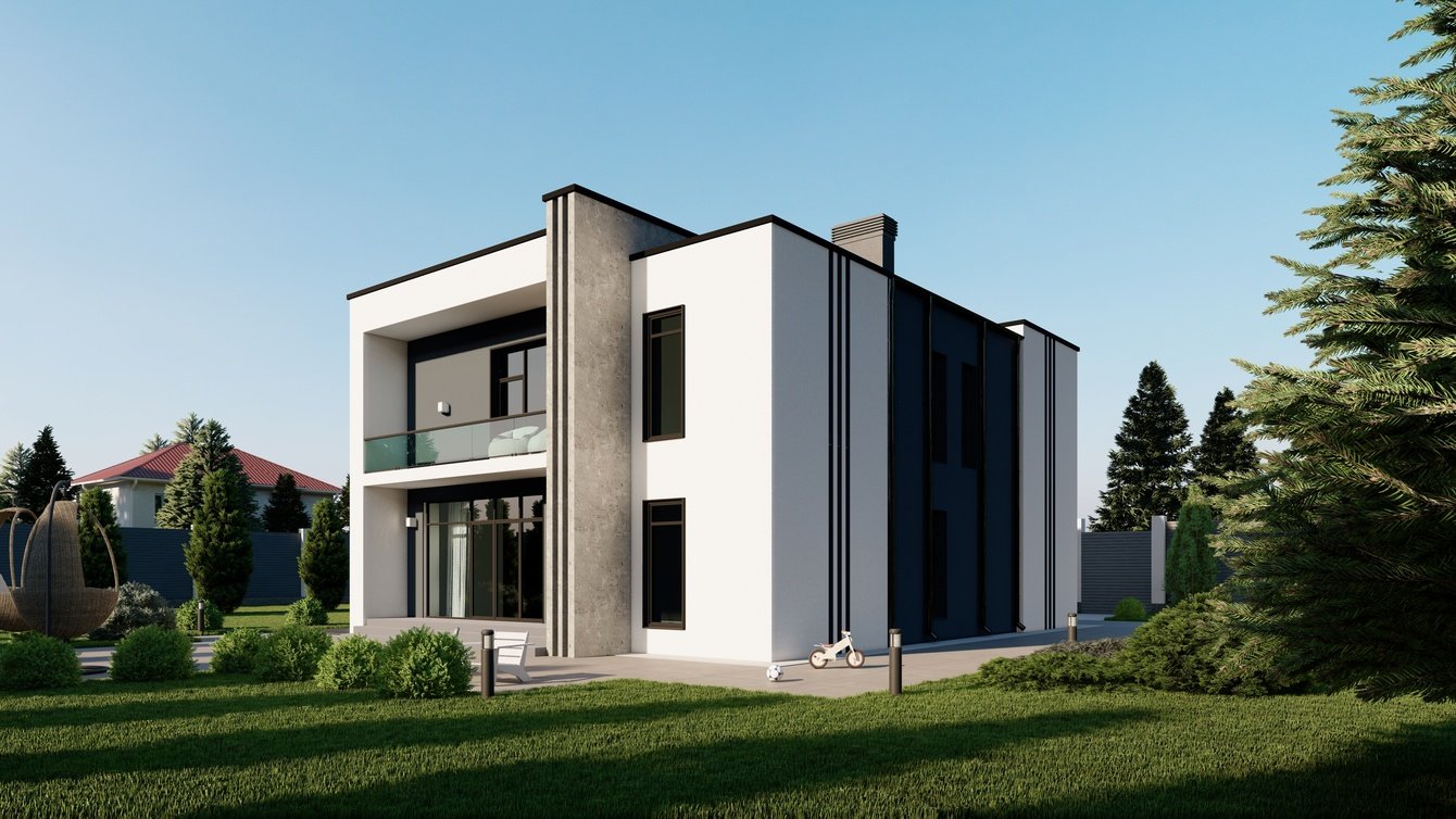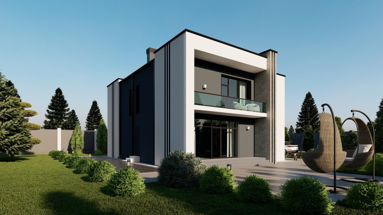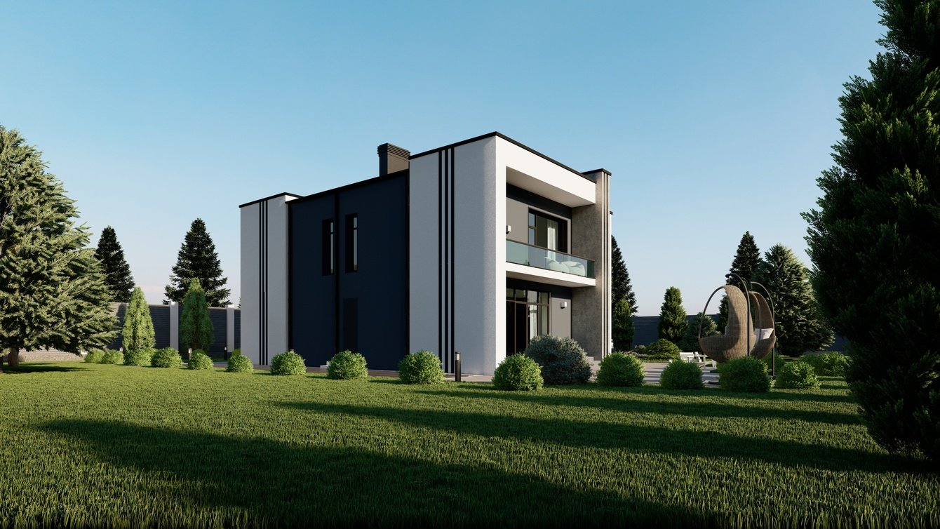 На изображении переданы все детали и особенности экстерьера. Визуализация позволила клиенту оценить внешний вид дома, его пропорции, цветовую гамму и стиль.