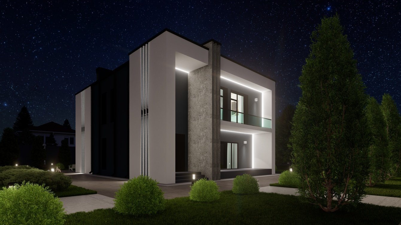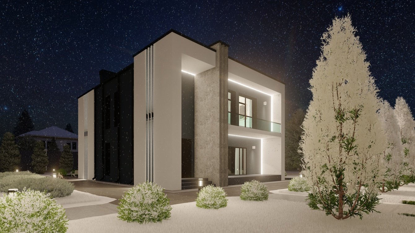 В рамках данного проекта была выполнена визуализация типового домика, включающая три ключевых сценария: дневную, ночную и зимнюю визуализации. Основная задача заключалась в создании реалистичных изображений, которые бы демонстрировали архитектурные особенности и дизайнерские решения данного объекта.