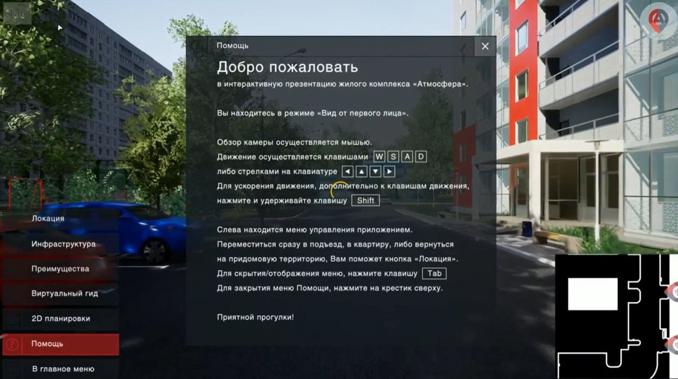 Моделировали подъезды, квартиры и ландшафт придомовой территории с учетом освещения и теней для большей реалистичности