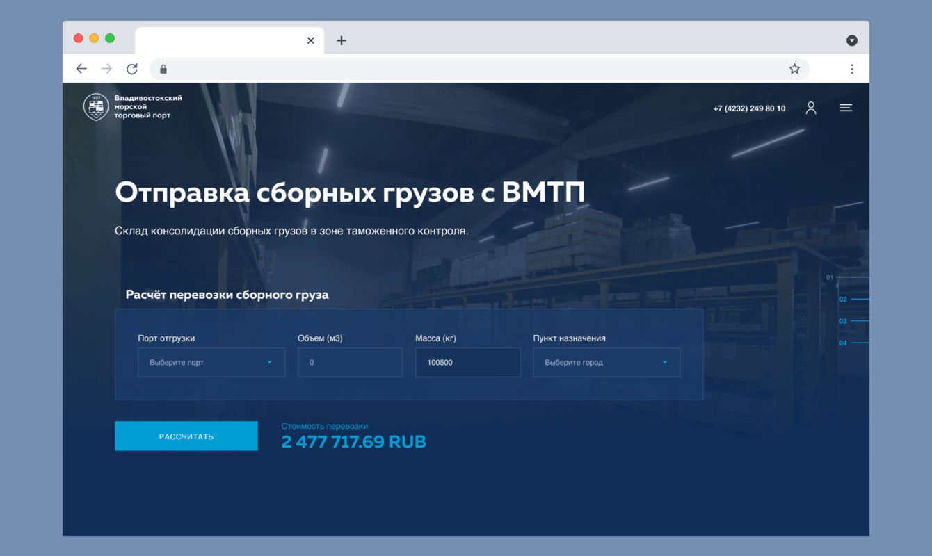 ✔ Нами был создан уникальный калькулятор расчета стоимости экспортной доставки до любой точки России. Расчет экспортных направлений ведется в долларах, клиенту требуется обозначить сумму в рублях на текущую дату. Мы интегрировали данные курса доллара Центрального Банка России в калькулятор. Таким образом, клиент в онлайн-режиме может узнать стоимость доставки своего груза из любой точки мира.