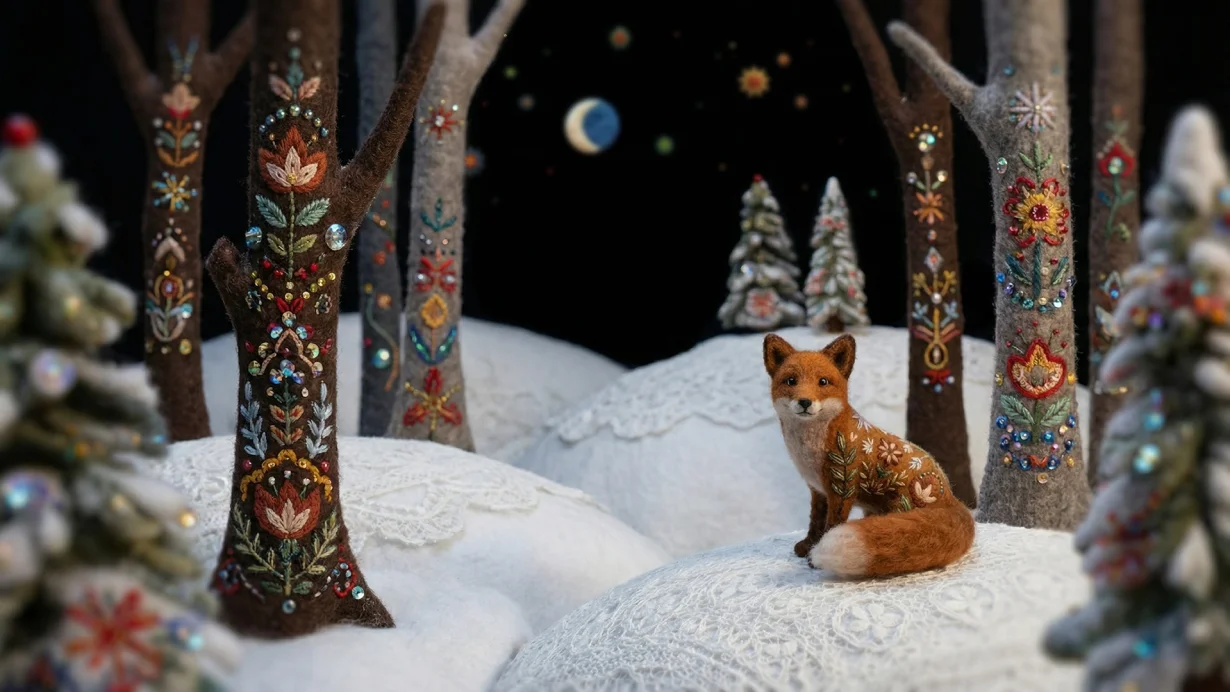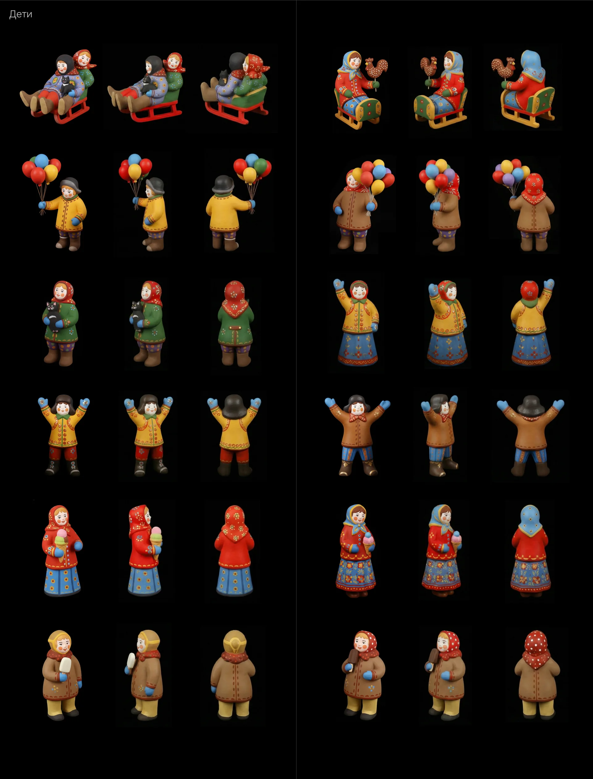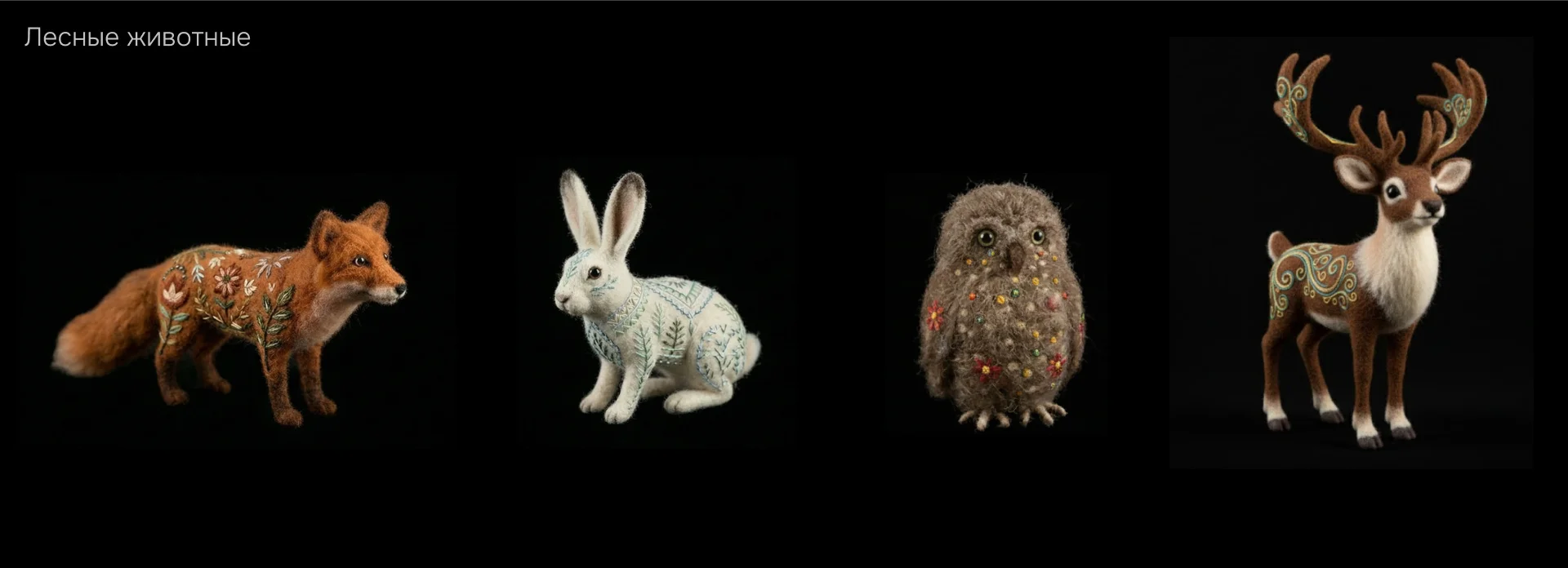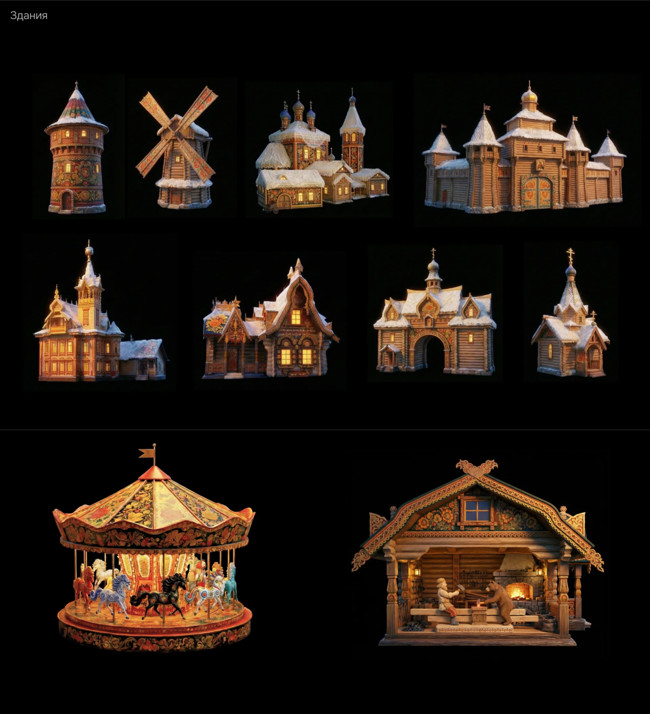 Для иллюстрации временного побега от рутины мы придумали историю про деревянную лошадку, сбегающую с новогодней карусели, чтобы совершить сказочное путешествие сквозь зимнюю ночь, наполненную волшебными пейзажами и их обитателями. Стилистическим решением, призванным создать ощущение праздника, была нейросетевая имитация знакомых с детства советских кукольных мультфильмов, которыми телевизор щедро одаривал детей в новогодние каникулы.