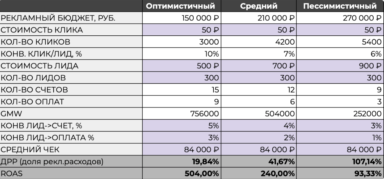 Определили, какие конверсии на каких этапах нам нужны для рентабельности.