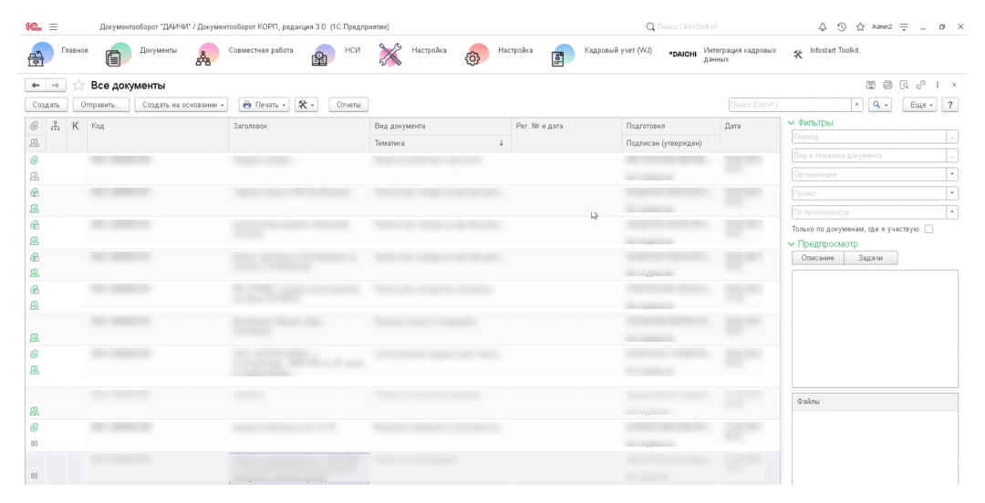 Теперь перечень документов содержится в одном месте. Находить условный регламент или накладную проще, сделаны системные фильтры для поиска. Можно сгруппировать все документы в общую папку и обеспечить быстрый доступ к ним для конкретного сотрудника. Не касающиеся его документы скрываются из навигации.