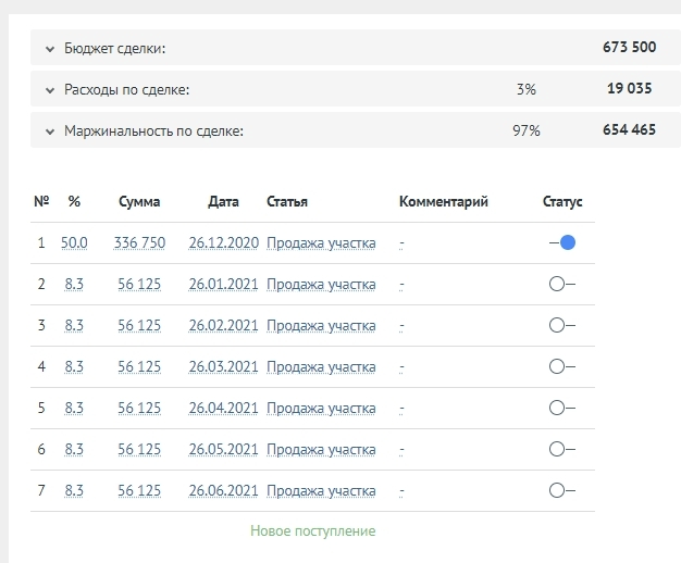 Для сделок с рассрочкой была сделана доработка, которая автоматически генерирует график платежей и ссылку, при переходе на которую клиент может посмотреть список всех своих платежей.